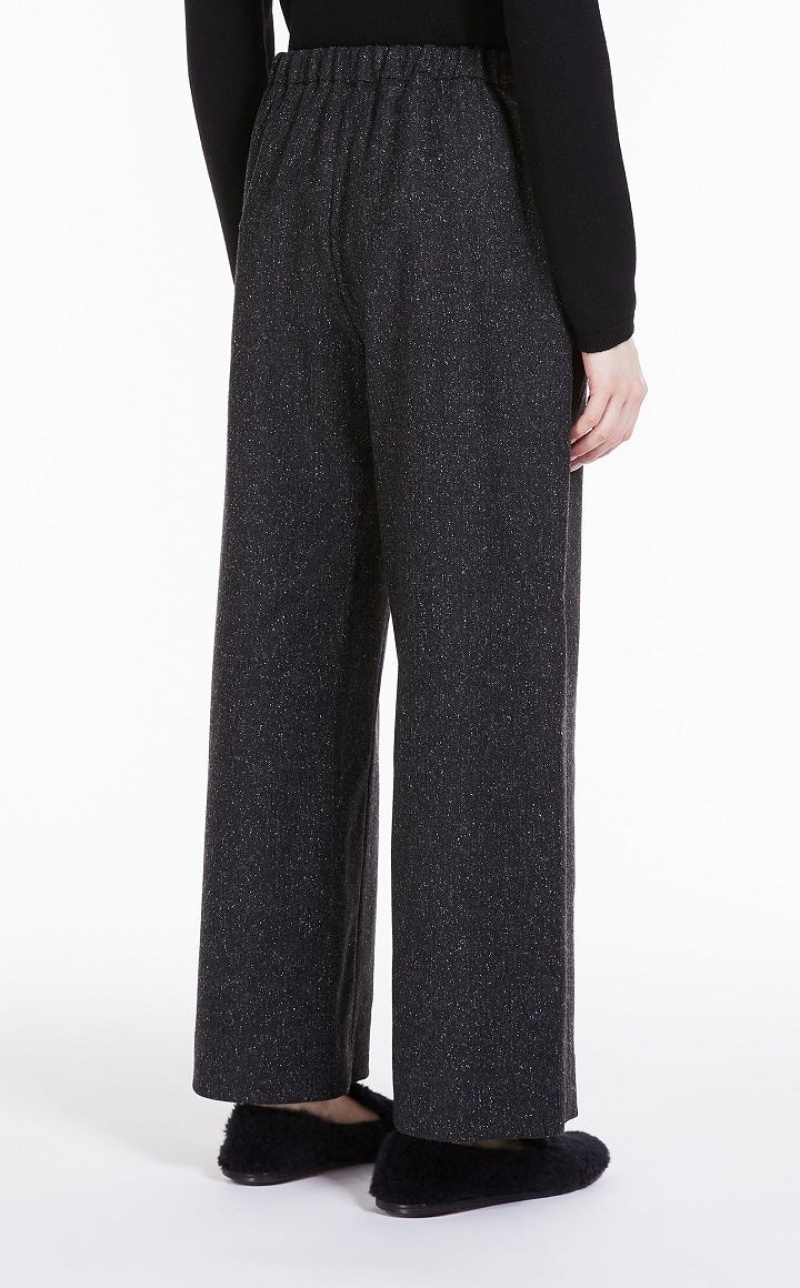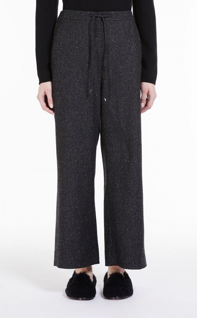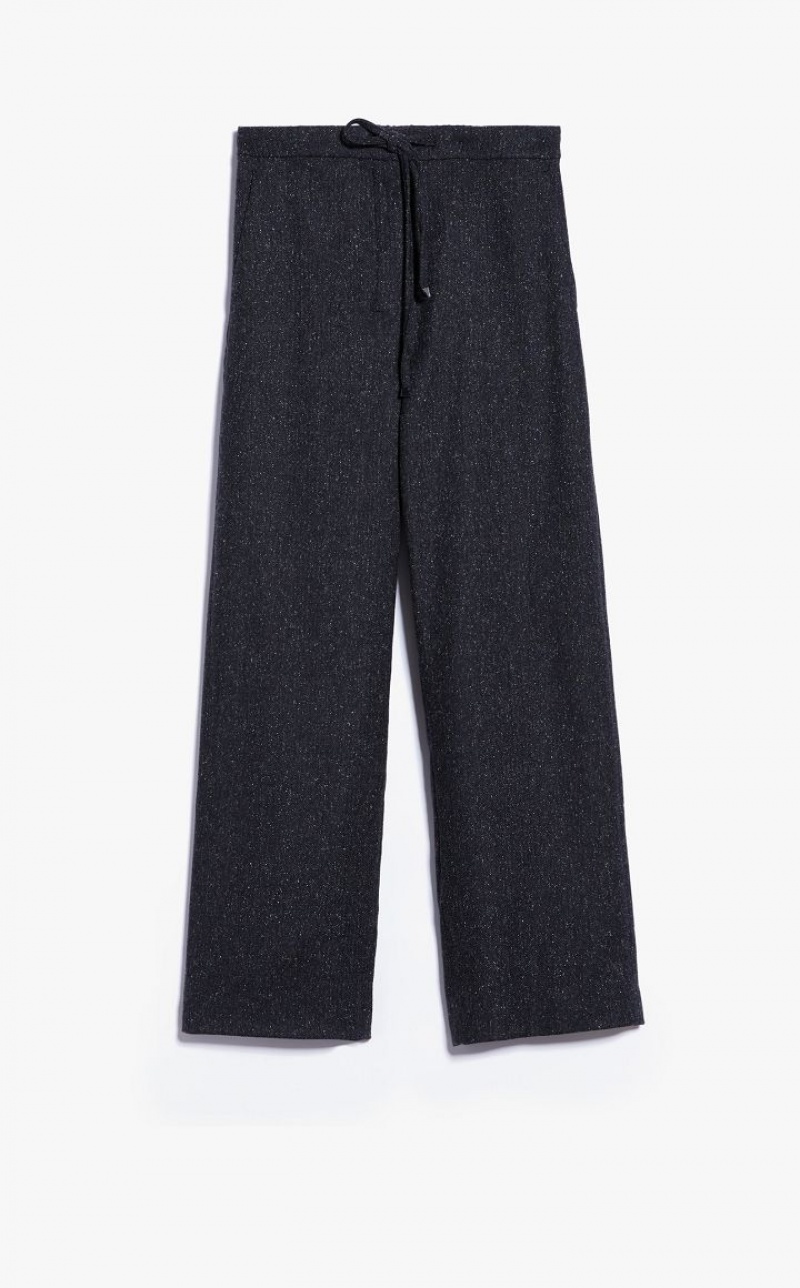 Soft wool yarn joggers embellished with an elegant micro pattern. Comfortable fit with an elasticated waist at the back, side pockets and adjustable drawstring. Length: 102 cm.