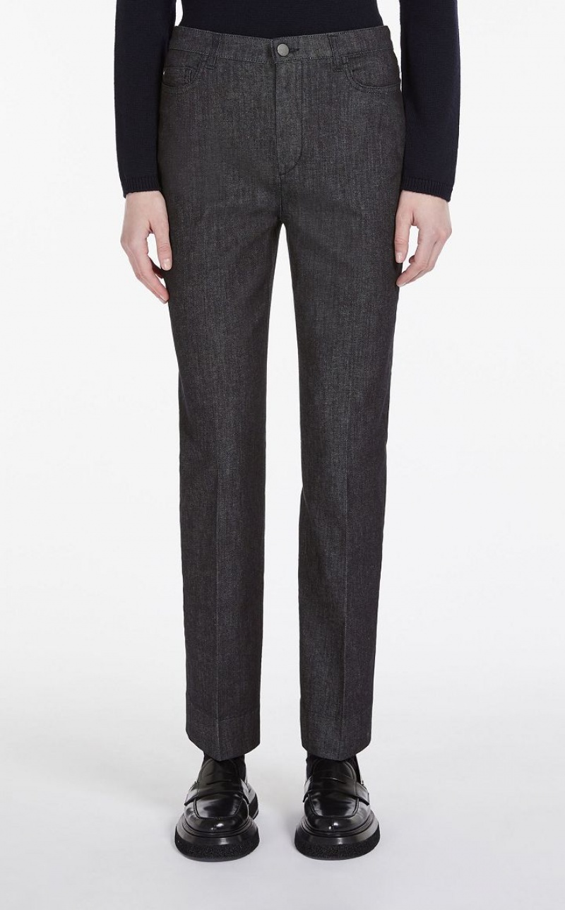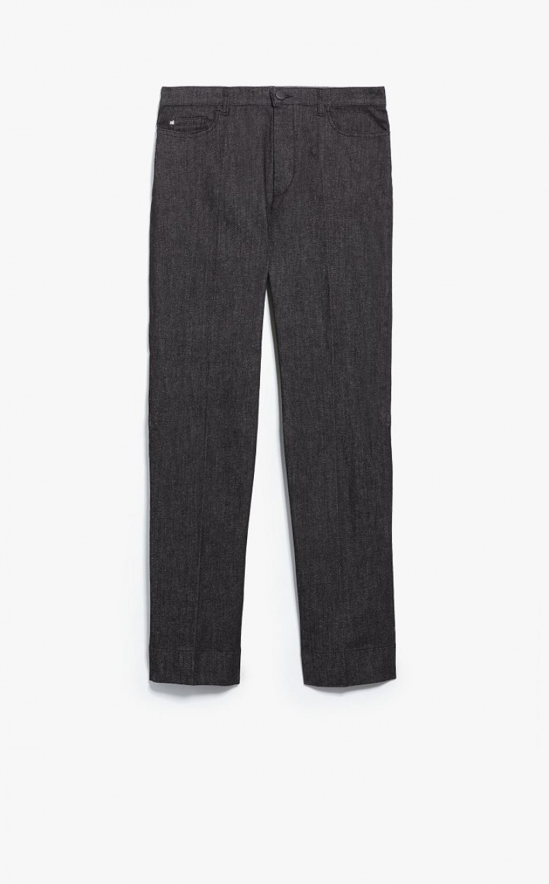 Slim-fit five-pocket trousers made of garment-treated stretch-cotton denim, finished with iconic details and matching stitching. The slightly stretchy fabric ensures a comfortable fit. Fastening with snap button and zip with flap. Length: 106 cm.