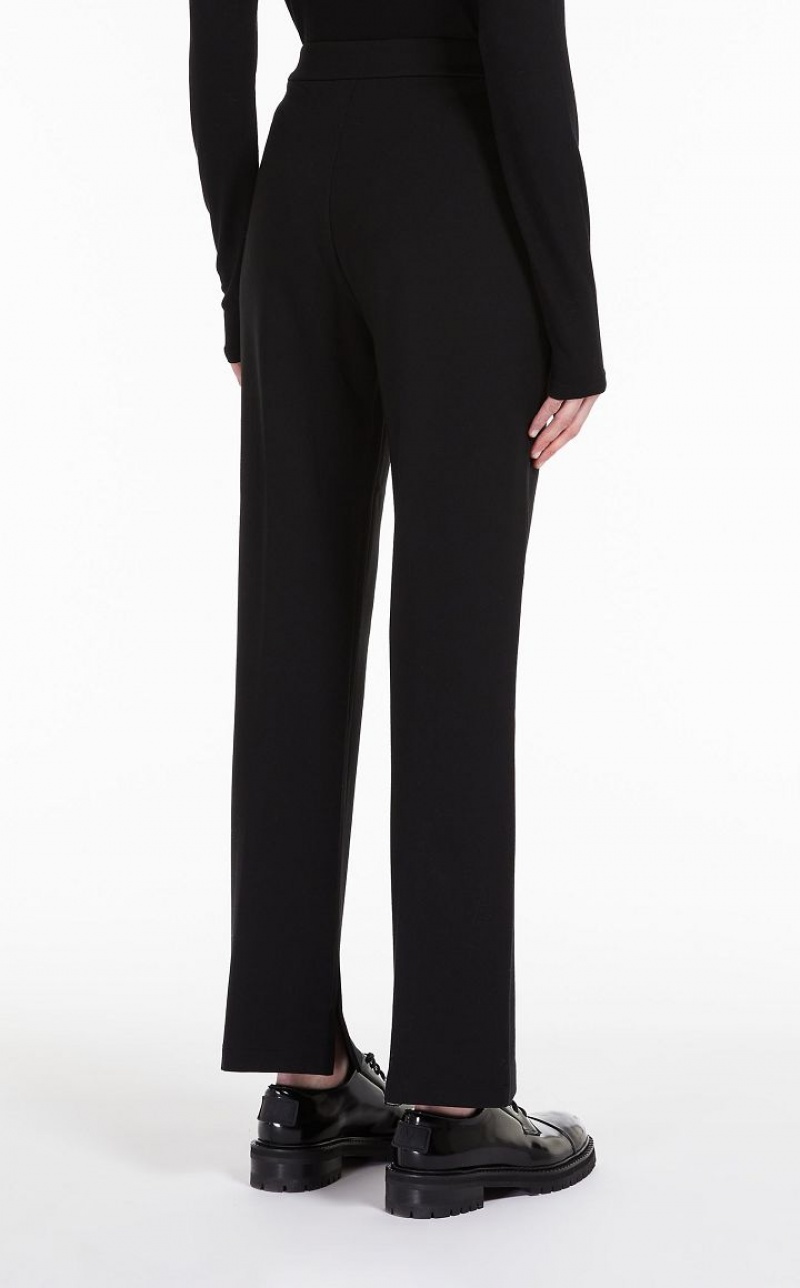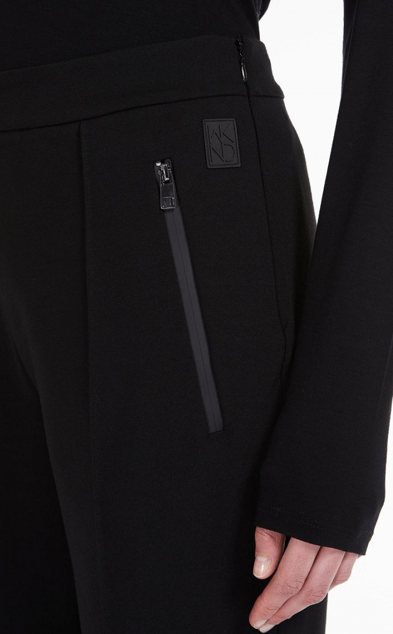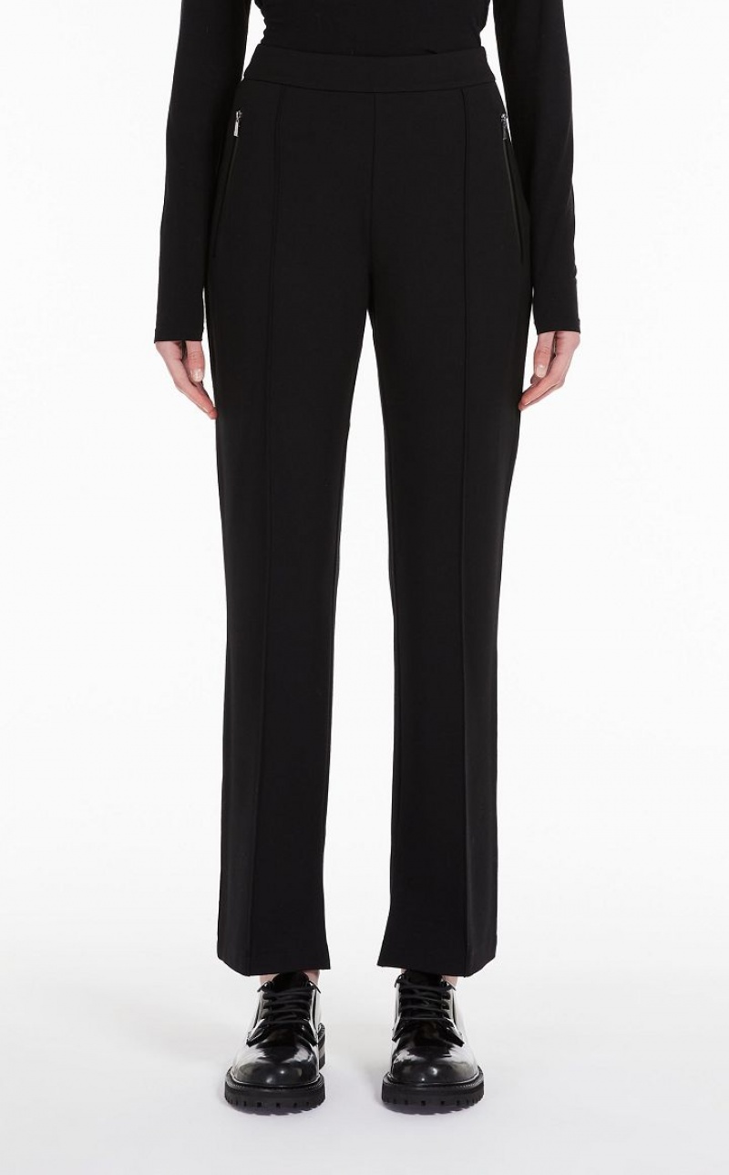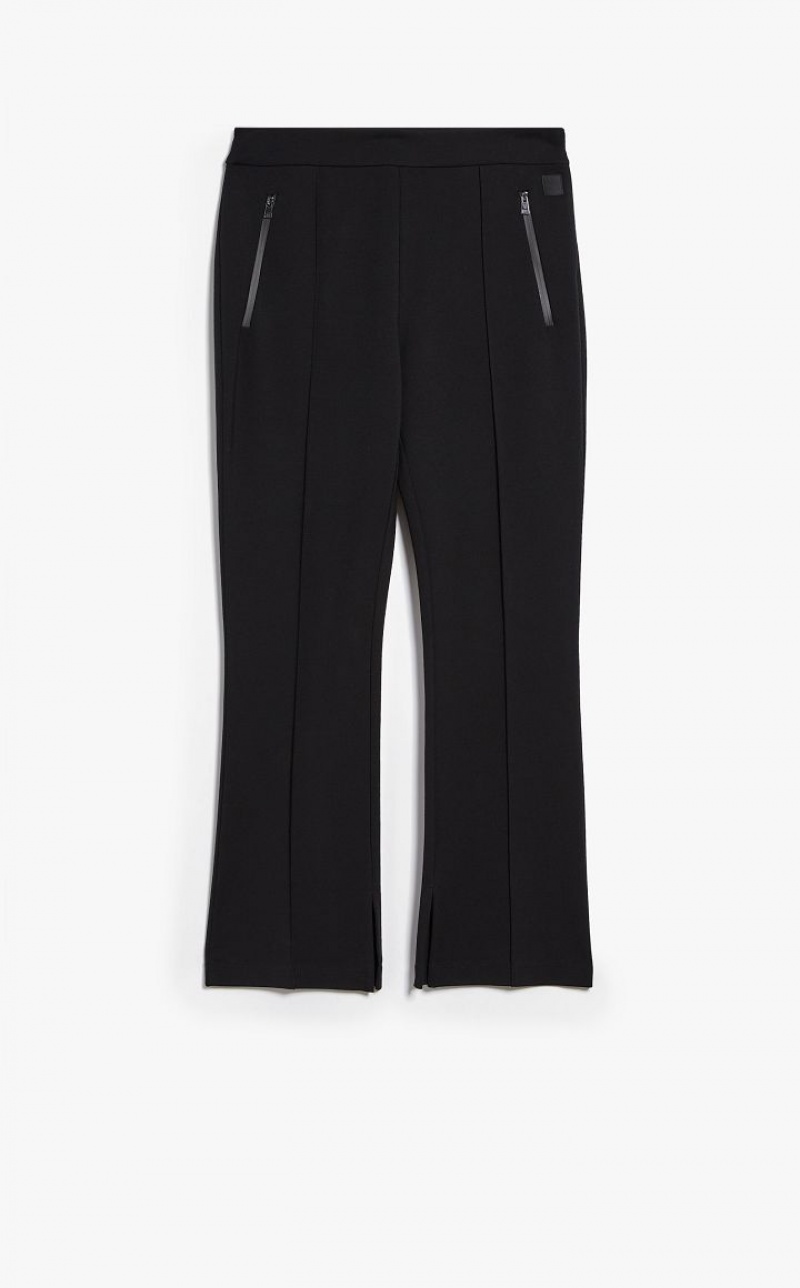Technical jersey trousers featuring a waistband, zipped side pockets and slightly flared leg hems. The ribbed detail on the front defines the garment's slim fit. Length: 100 cm.
