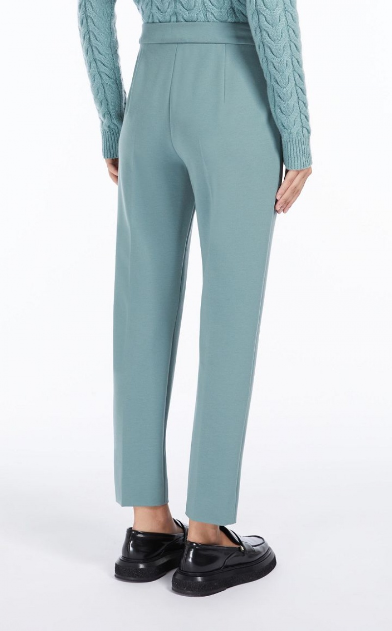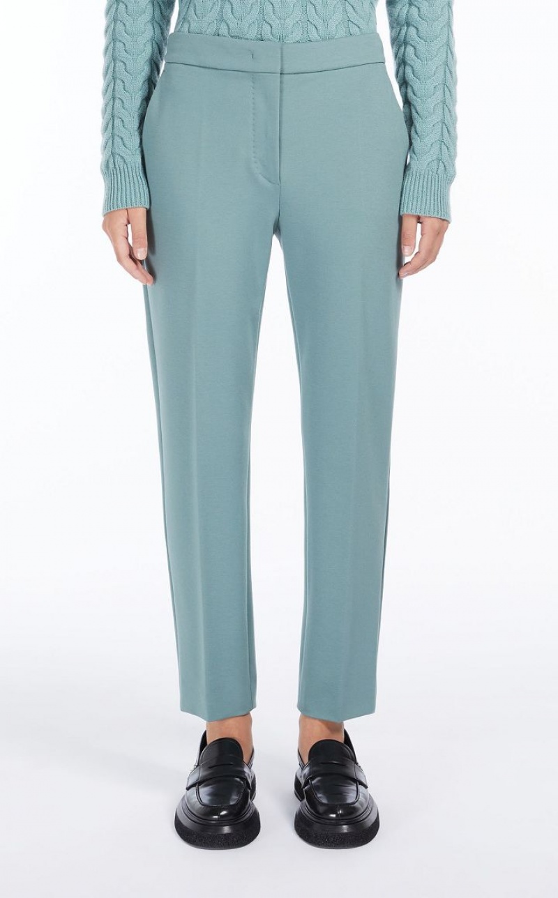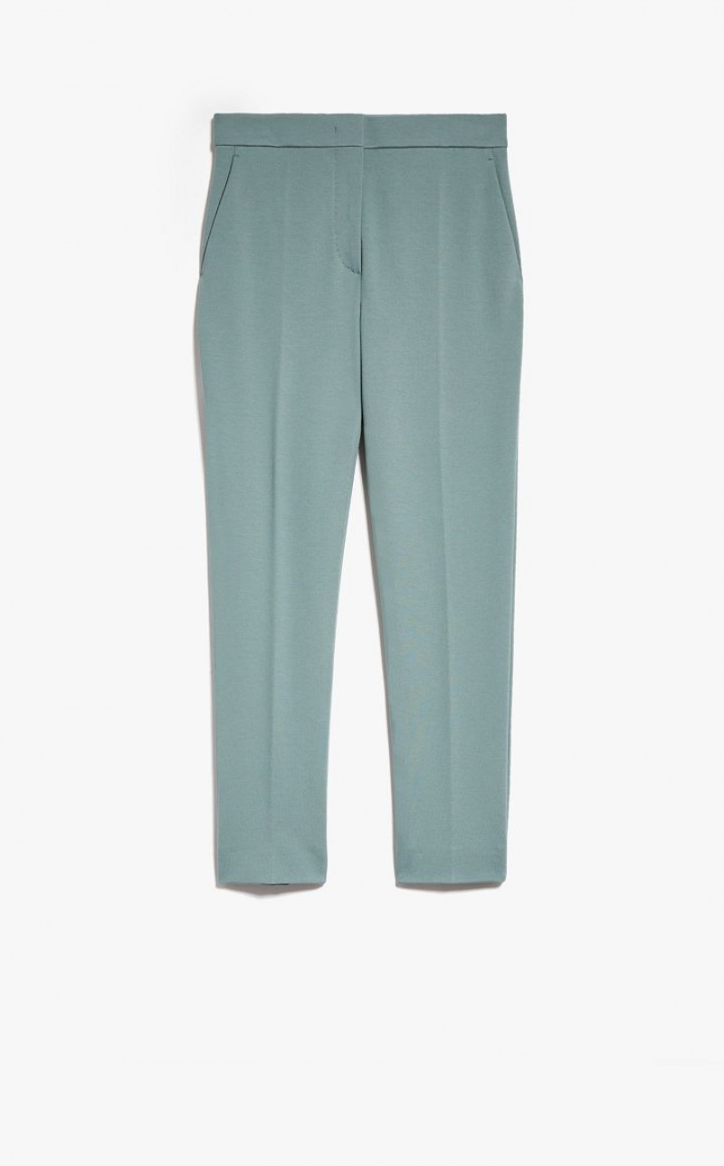 Classic Max Mara trousers distinguished by a fitted line with regular waist and cropped at the ankle. Made of soft, compact viscose jersey, finished with slant pockets on the sides and trouser crease on the leg. Fastening with wide waistband, flap with zip and small hook.