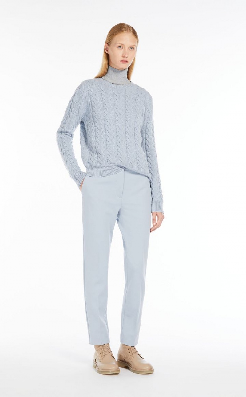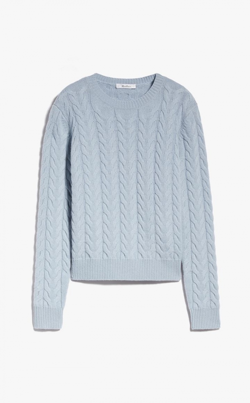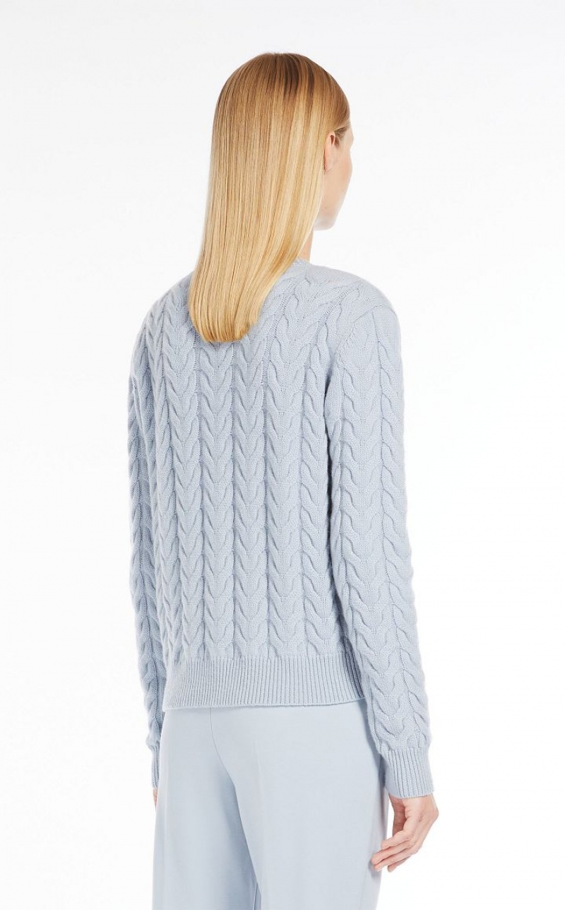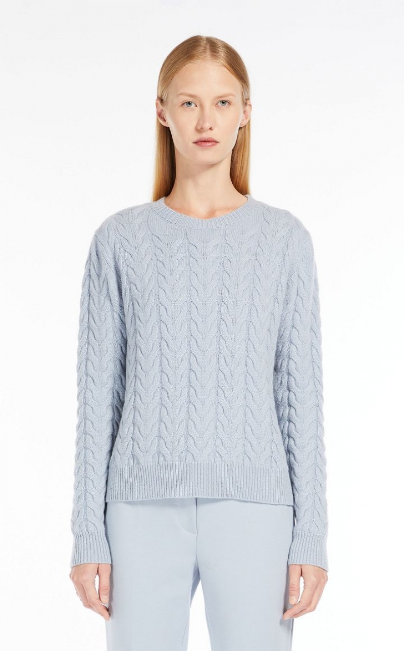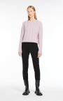 Small pullover in fine pure cashmere yarn with a semi-fitted volume, round neckline and long sleeves. The garment is embellished with an all-over cable knit and ribbed edges. Length: 55 cm.
