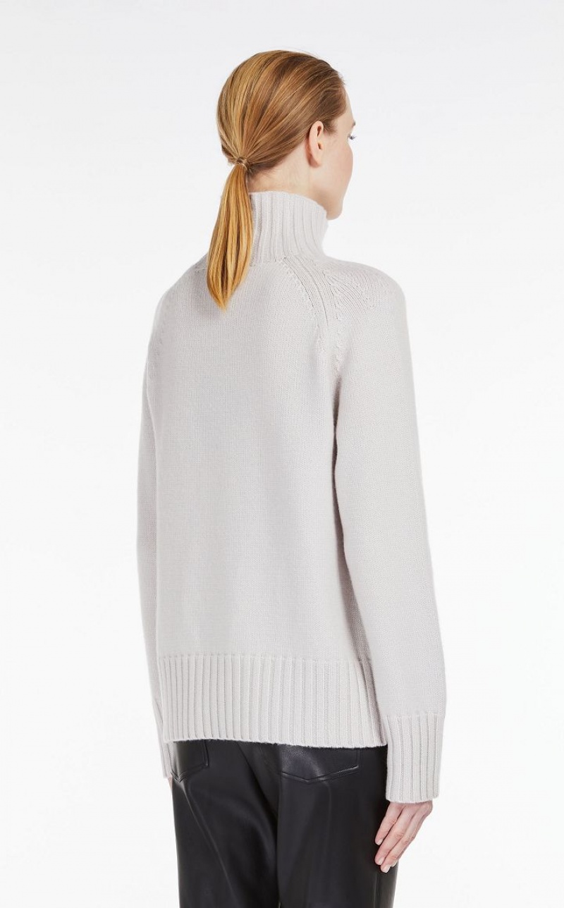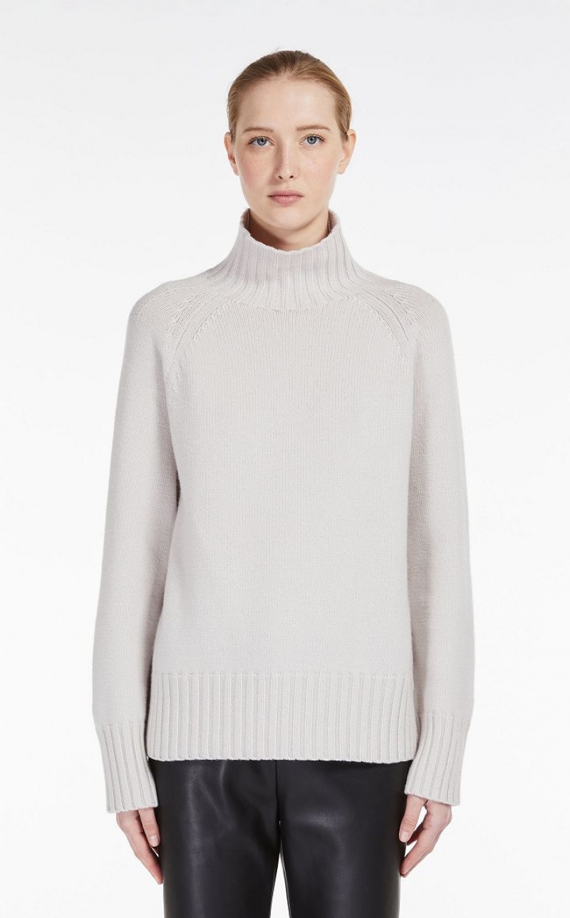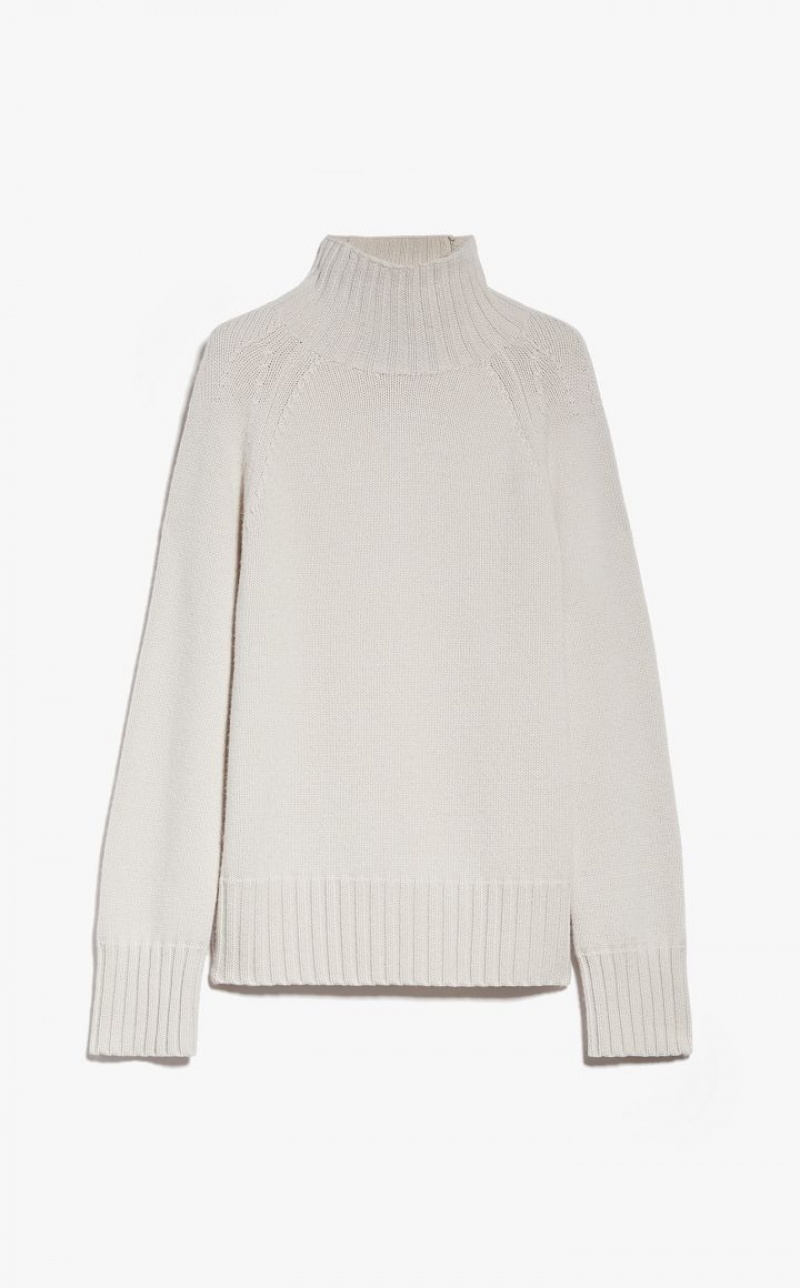 Polo-neck sweater in fine wool and cashmere yarn. The model's essential style is embellished with rib-knit trims and long raglan-cut sleeves. Length: 66 cm.