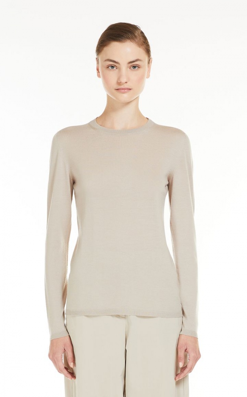 Crew-neck jumper made of an exquisite, lightweight pure wool yarn. The minimal and versatile design of the style is completed by a stockinette stitch that is very soft and pleasant to the touch, and a semi-fitted line that defines the silhouette.