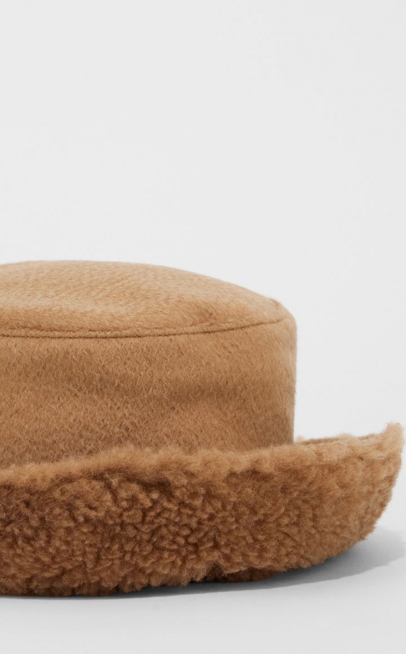 Glamorous and versatile, the Max Mara bucket hat is made of two iconic materials. One side is made of fluffy camel Teddy on a silk base, the other of soft pure camel fabric.