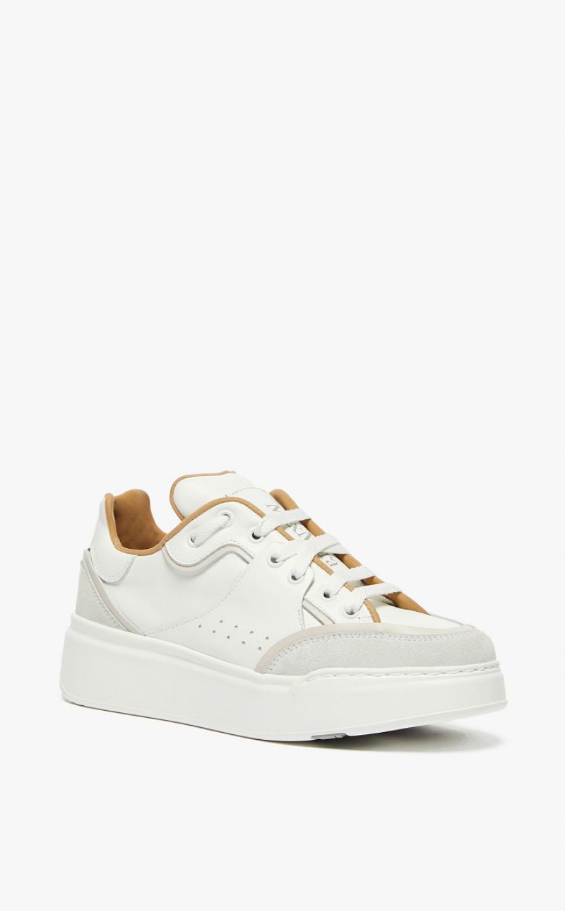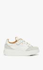 Calfskin and suede urban sneakers with minimalist lines. The design features an oversized leather label on the tongue, with a screen-printed logo and an interplay of laces that leave it visible. The extremely lightweight sole customised with an M Monogram logo and 5 cm internal memory foam footbed make them extremely comfortable and light for walking in.