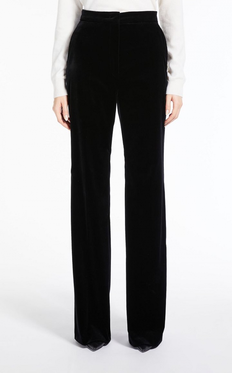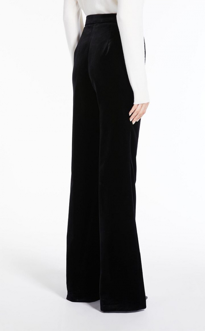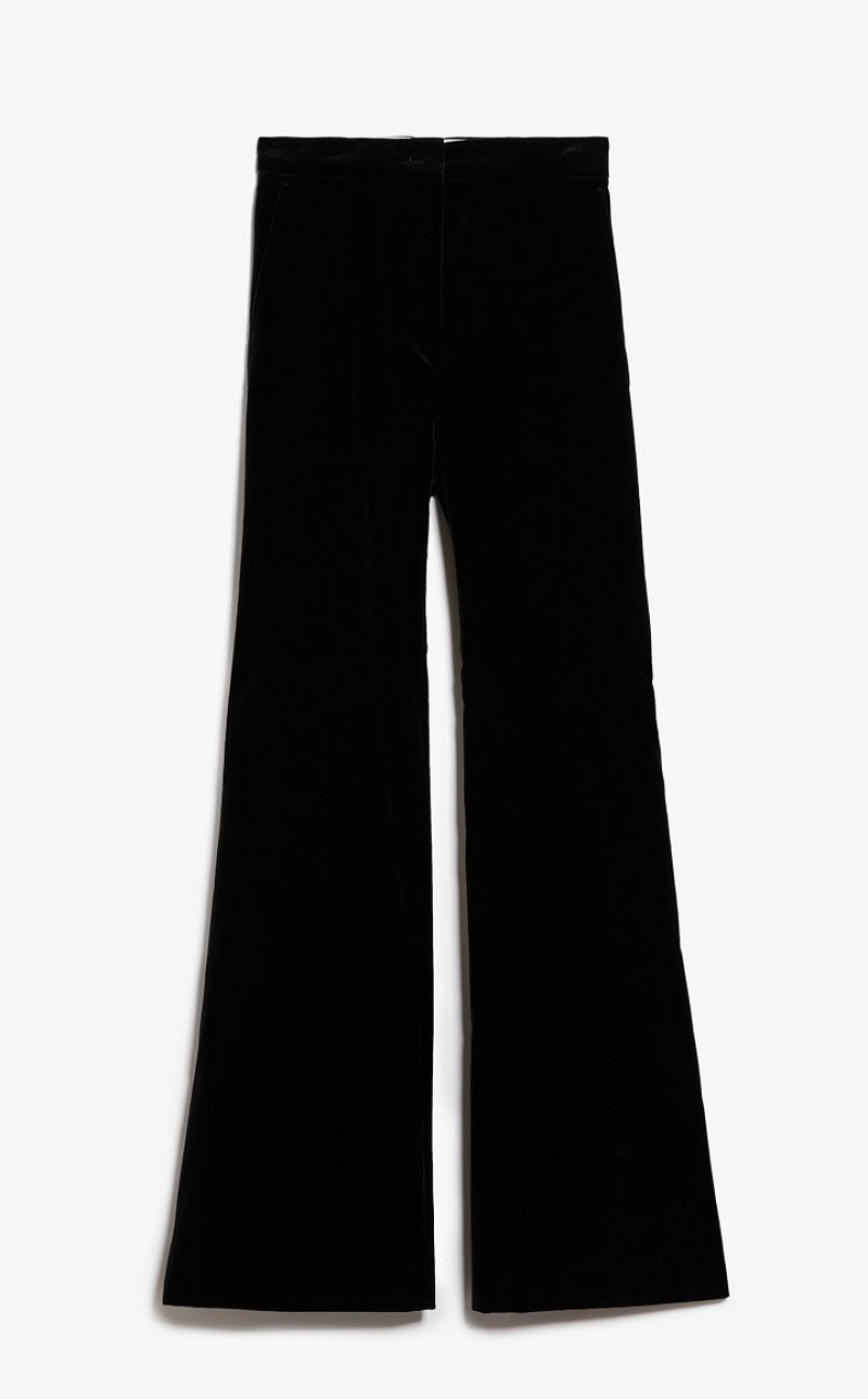 Cotton-velvet trousers featuring a 70s-inspired flared silhouette. Completed with slant pockets at the sides. Fastening with high waistband tab, zip fly and small hook. Length: 118 cm.
