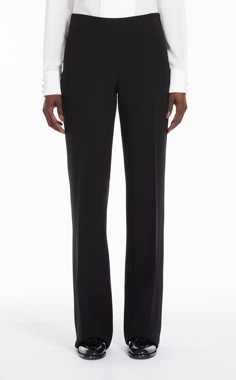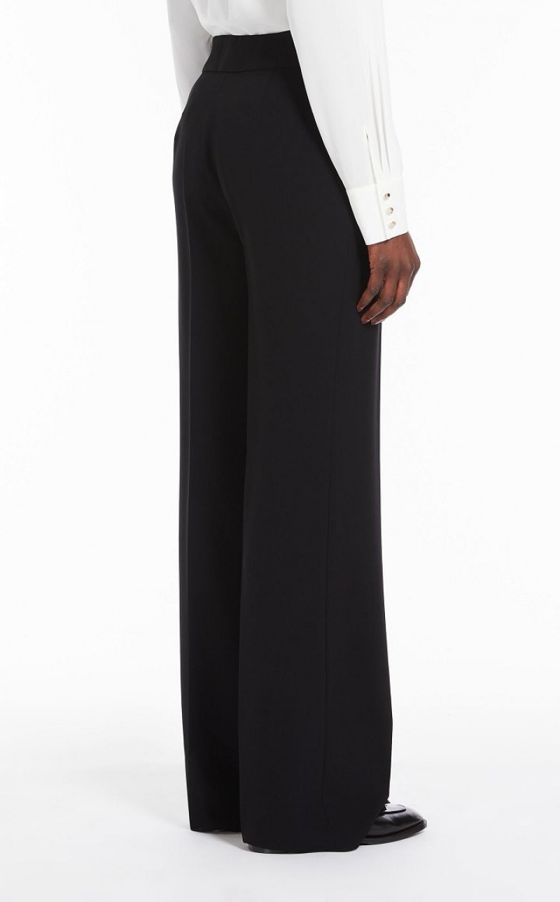 Fluid-fit wide-leg trousers in technical cady fabric. Concealed zip fastening at the side.