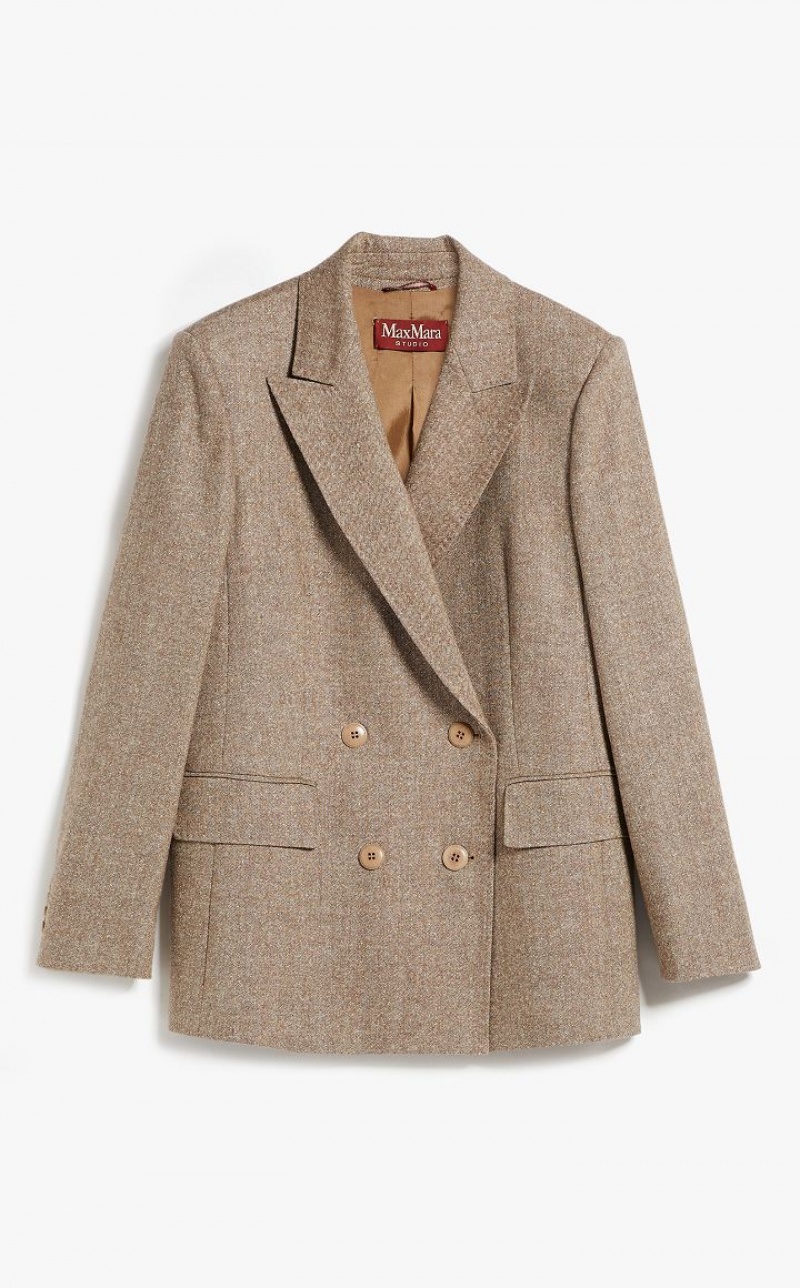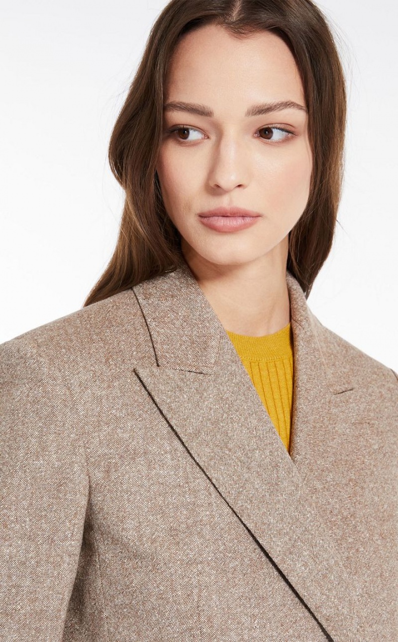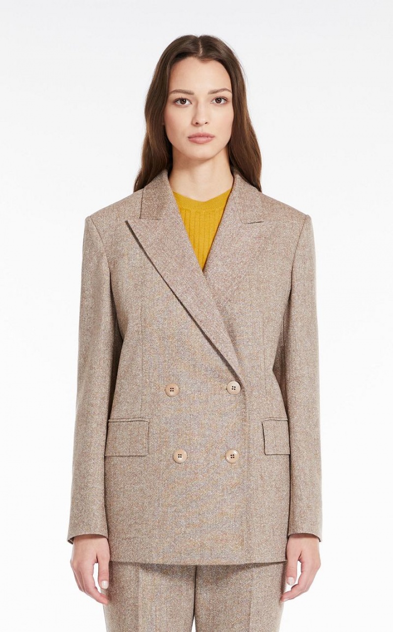 British-style double-breasted blazer in slightly stretchy wool-blend Donegal tweed fabric featuring a lapel collar, long set-in sleeves and flap pockets. Lined model. Button fastening.