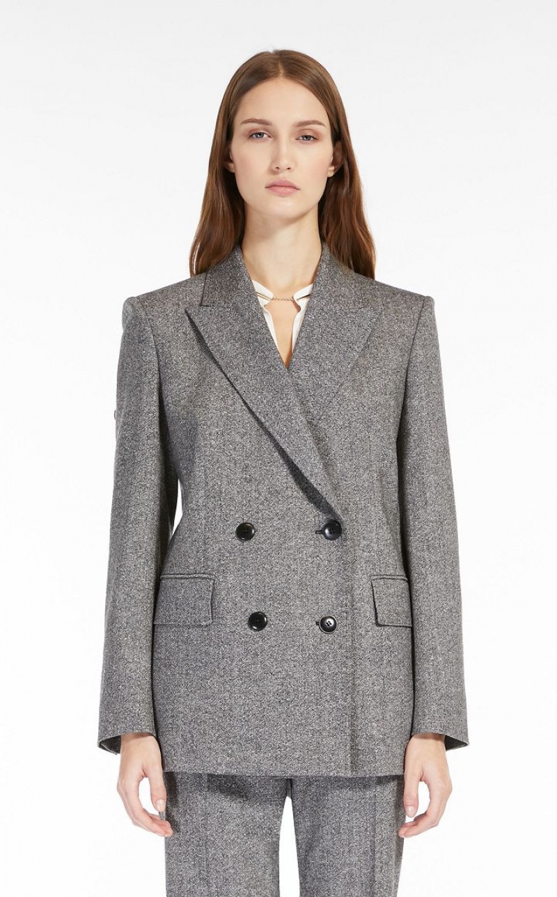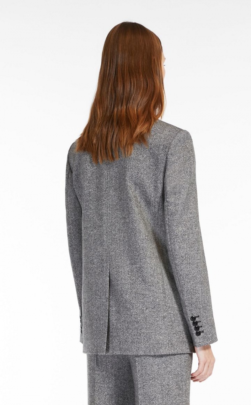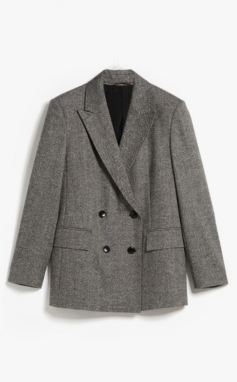 British-style double-breasted blazer in slightly stretchy wool-blend Donegal tweed fabric featuring a lapel collar, long set-in sleeves and flap pockets. Lined model. Button fastening.