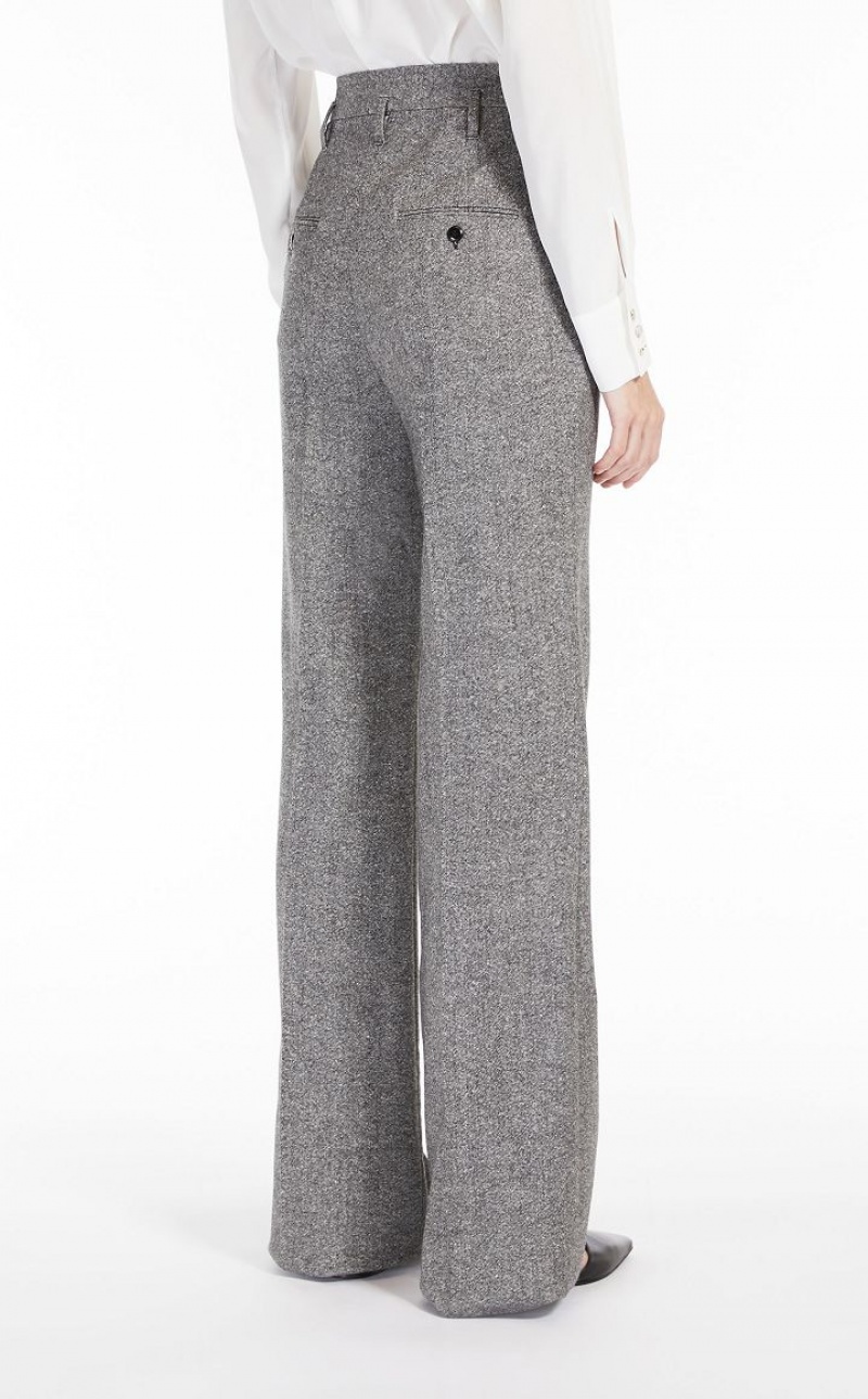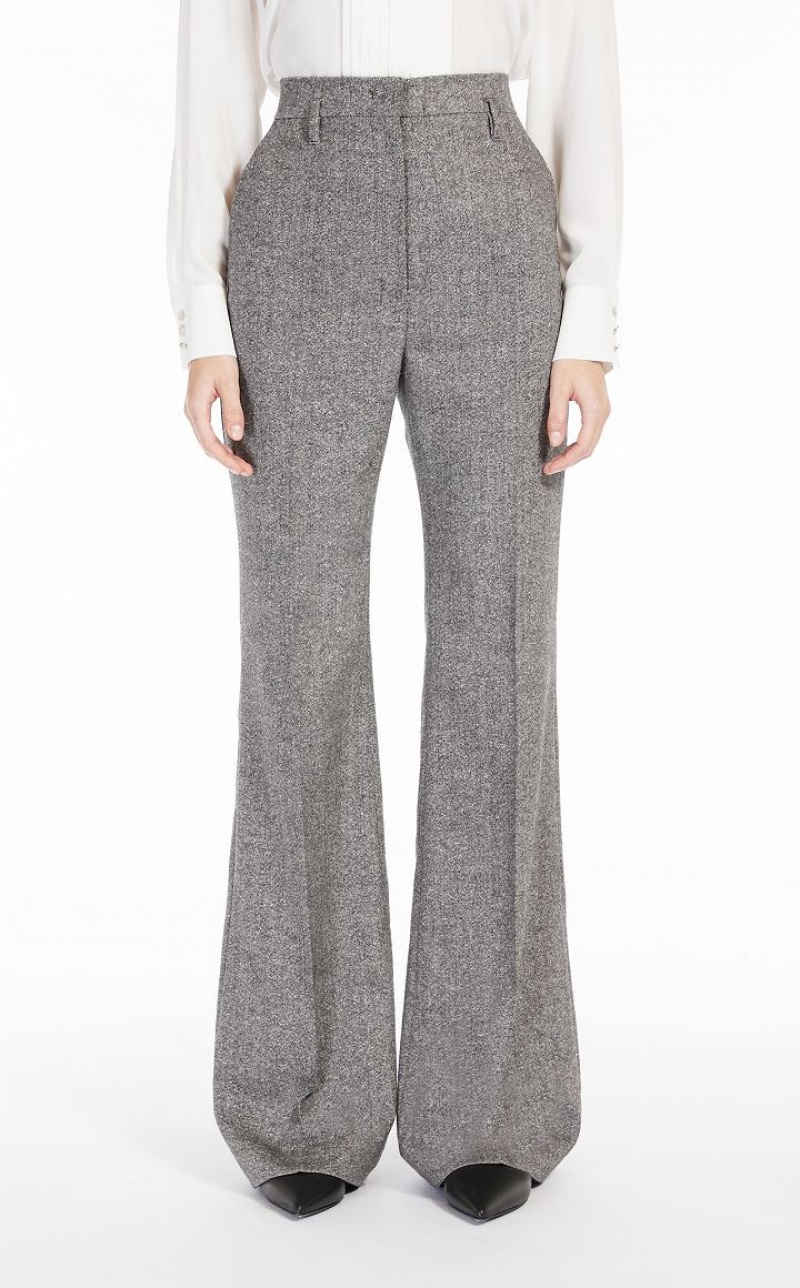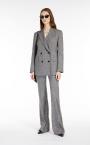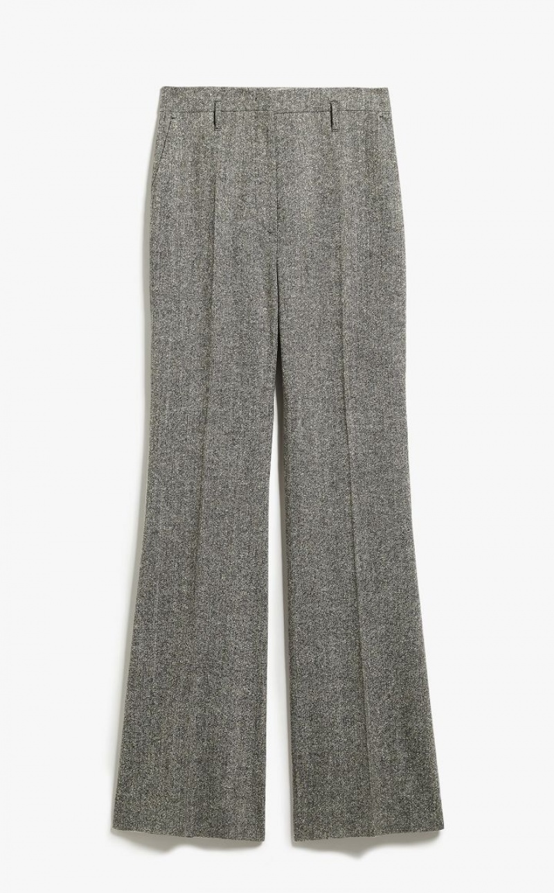 Flared trousers in wool Donegal tweed fabric featuring a slightly stretchy plain weave for a comfortable fit. The ‘70s-style model boasts bias-cut front pockets and double-welt rear pockets. Extended waist tab, complete with a placket-covered zip and hook-and-bar fastening. Length: 118 cm.