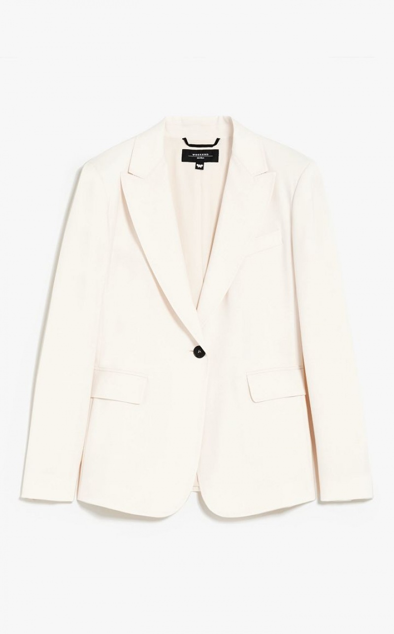 Single-breasted blazer in lightweight pure wool fabric, with natural stretch and a fitted line. Its classic construction with tailored detailing features a lapel collar, breast pocket and flap pockets on the front. Lined style with central vent on the back and single button fastening.