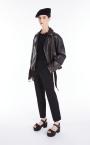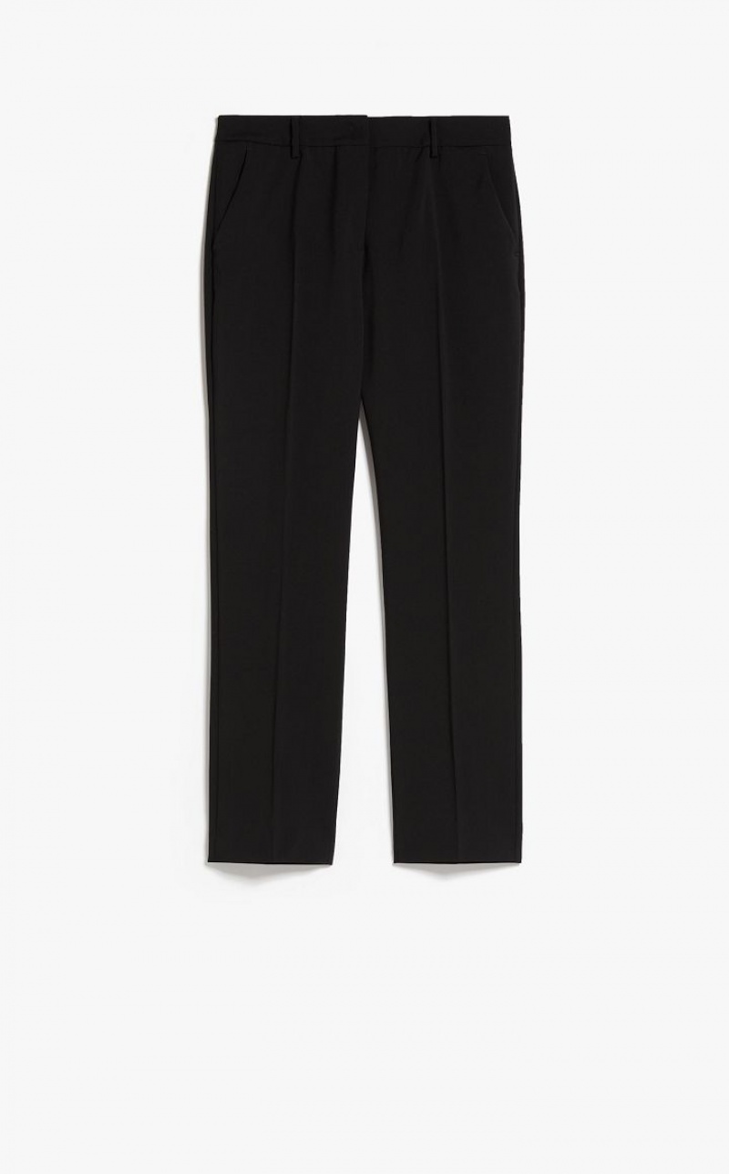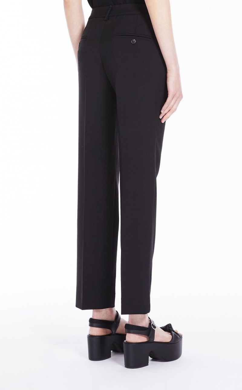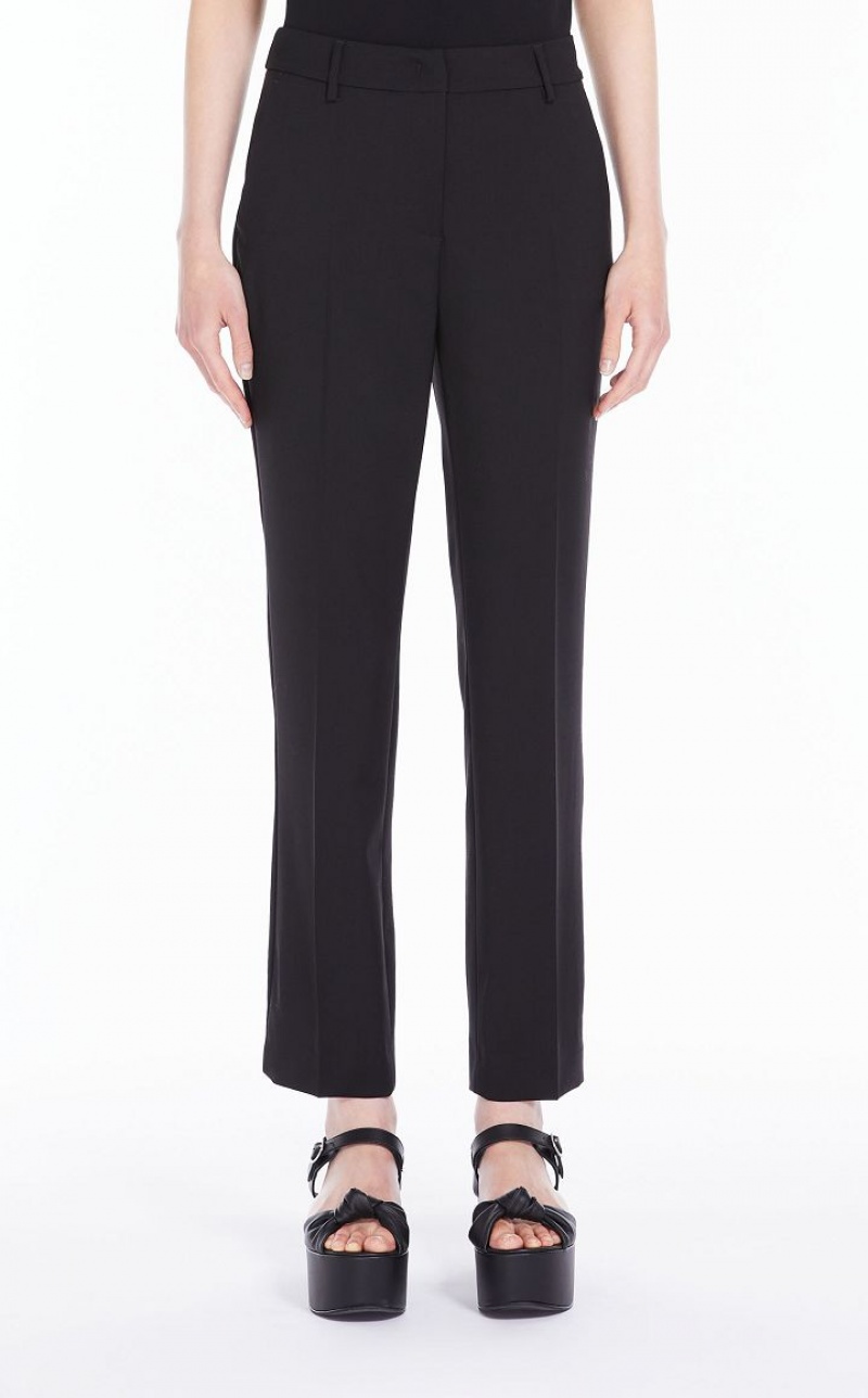 Cigarette-cut trousers in soft, natural stretch pure wool fabric. This style is cropped at the ankle and features a pressed crease on the leg, slanted pockets on the front and double welt pockets with button on the back. Fastening with deep band at the waist, flap with zip and hook.