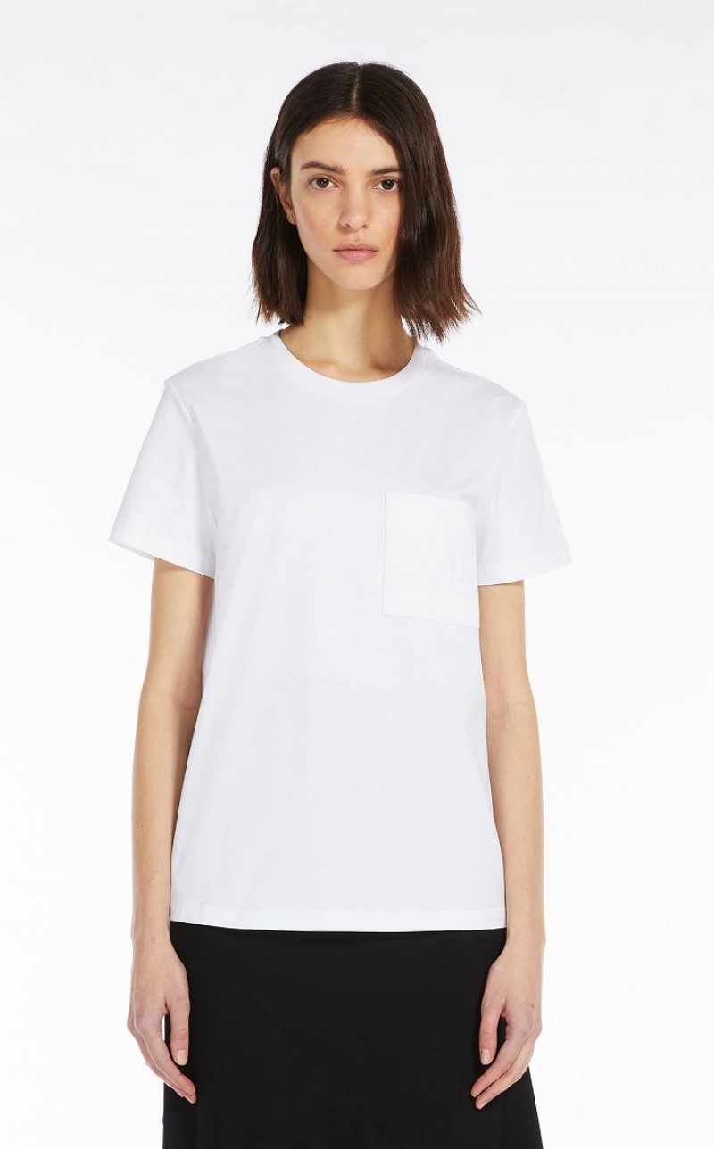 Short-sleeved crew-neck T-shirt made of soft pure cotton jersey. Featuring a breast pocket with matching embroidered MaxMaraGram logo. Featuring a ribbed neck.