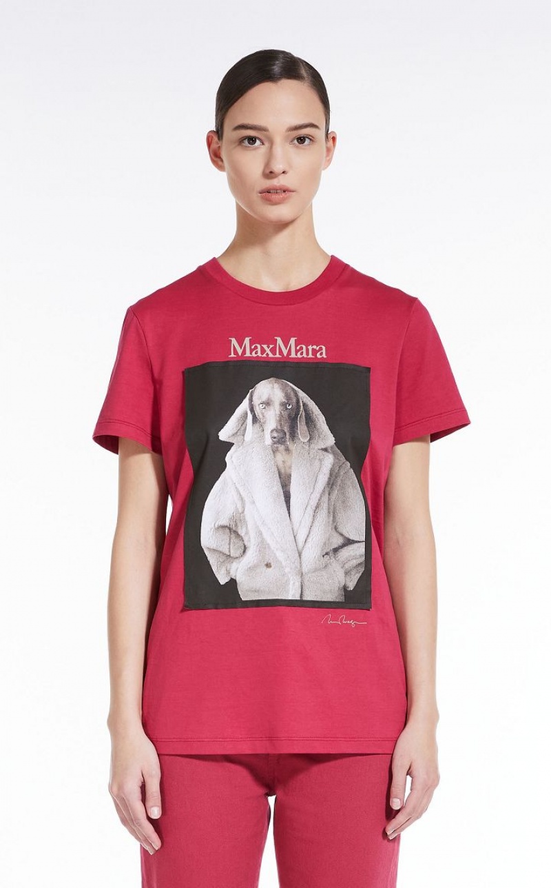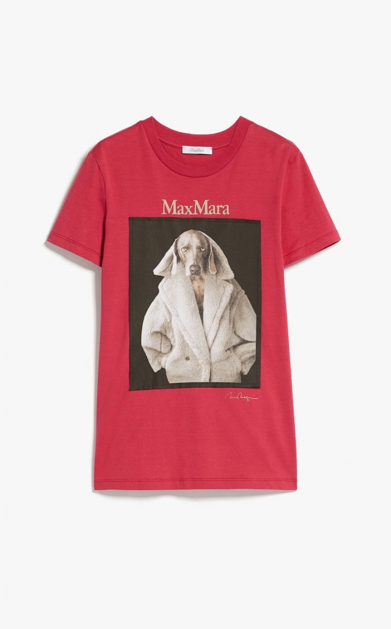 Pure soft cotton jersey regular-fit T-shirt with a round collar and short sleeves. To mark "Teddy Ten", the 10th anniversary of the iconic Max Mara coat, artist William Wegman has contributed a new picture for the "Dogs in Coats" series: the printed image portrays the artist’s Weimaraner wearing the Teddy coat in the cacha colour. Length: 66 cm.