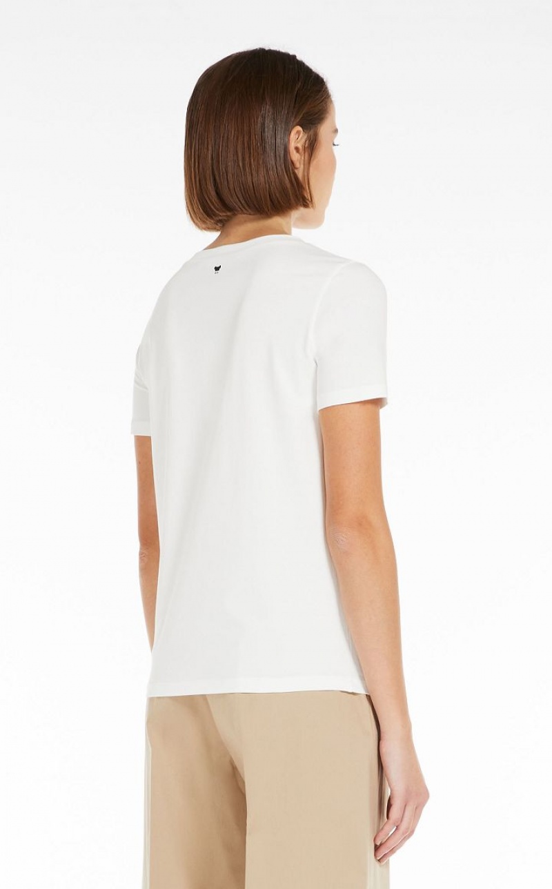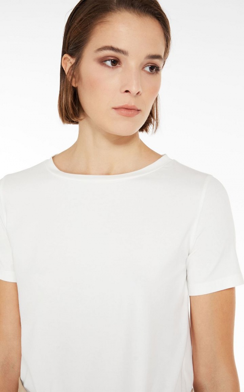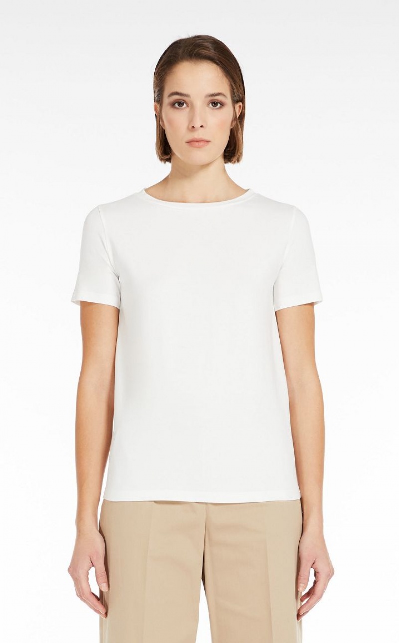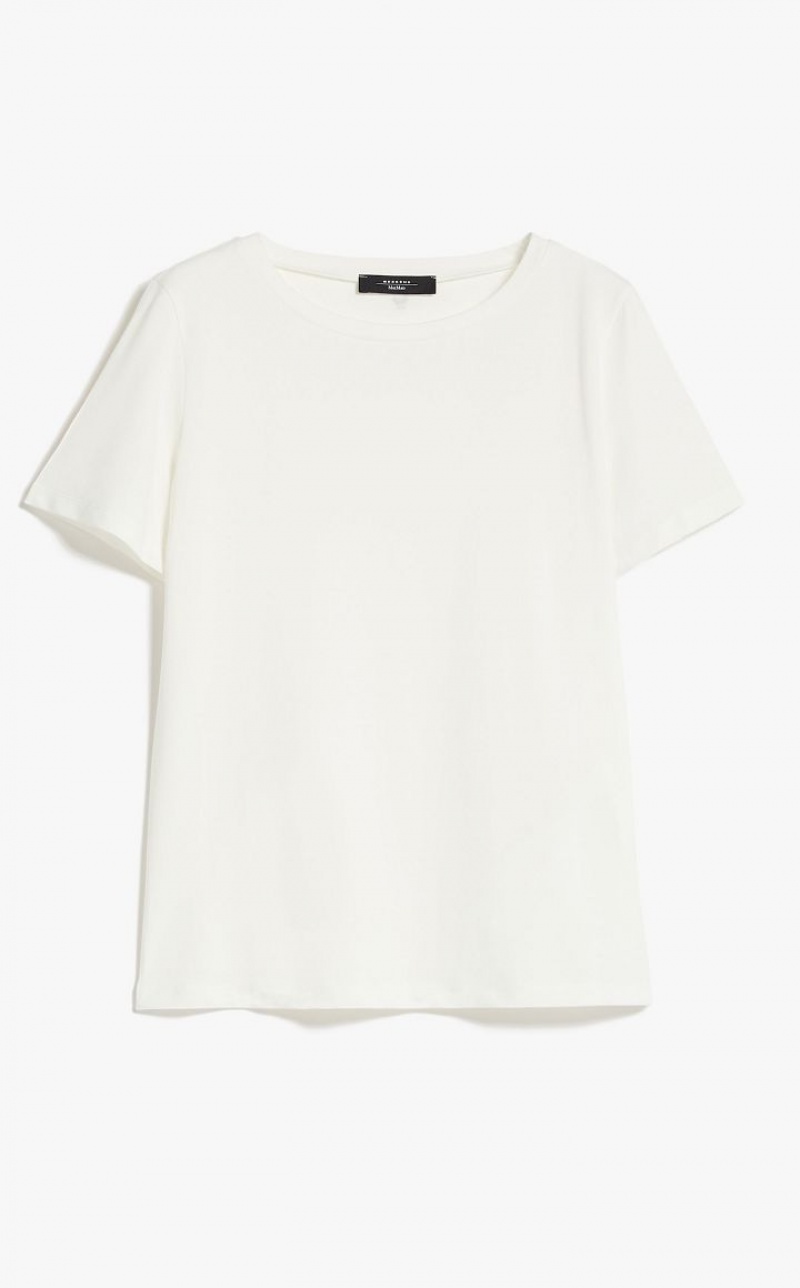 Basic T-shirt in soft stretch cotton jersey. Straight style with round neck, short sleeves and small butterfly logo printed on the back of the neck.