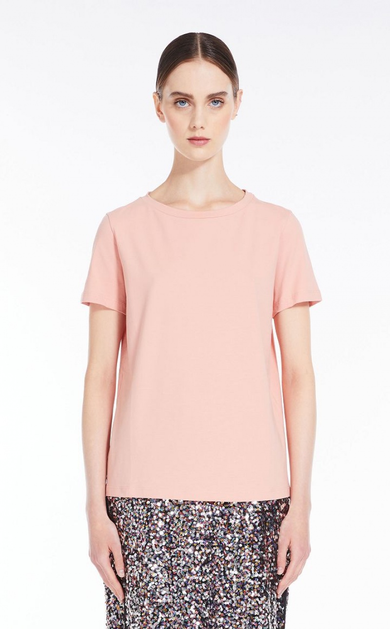 Basic T-shirt in soft stretch cotton jersey. Straight style with round neck, short sleeves and small butterfly logo printed on the back of the neck.