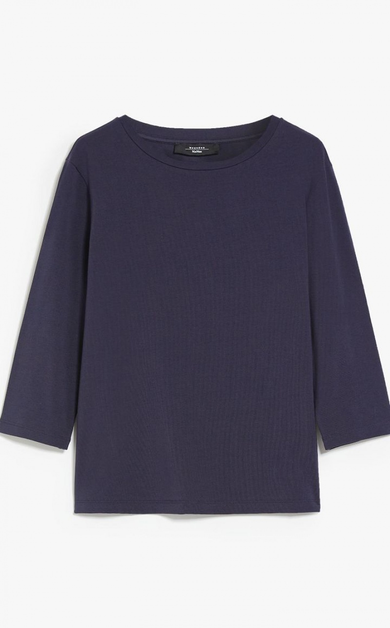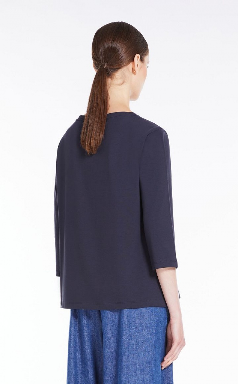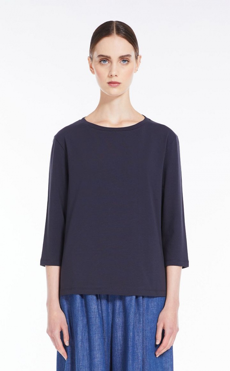 Regular-fit T-shirt in soft stretch cotton jersey, with boat neck and three-quarter sleeves. With side slits at the hem and small butterfly logo printed on the back of the neck.