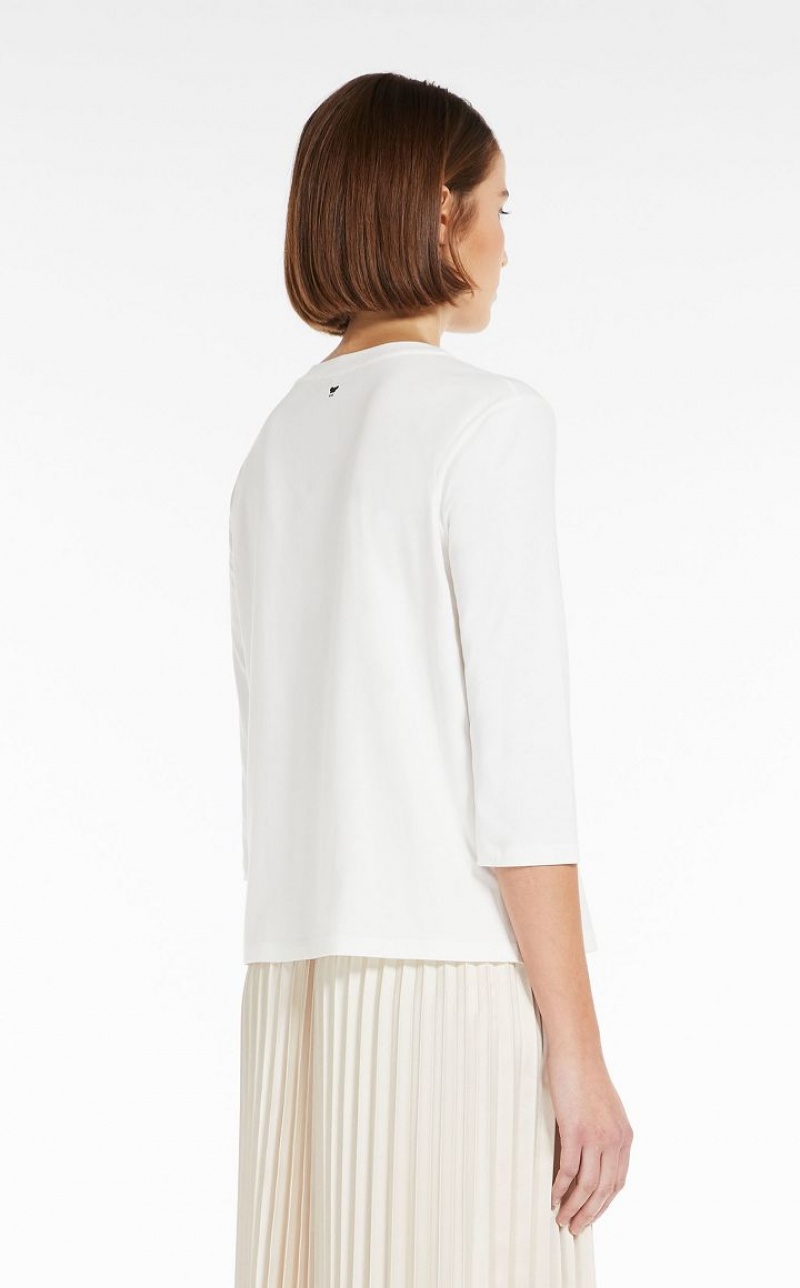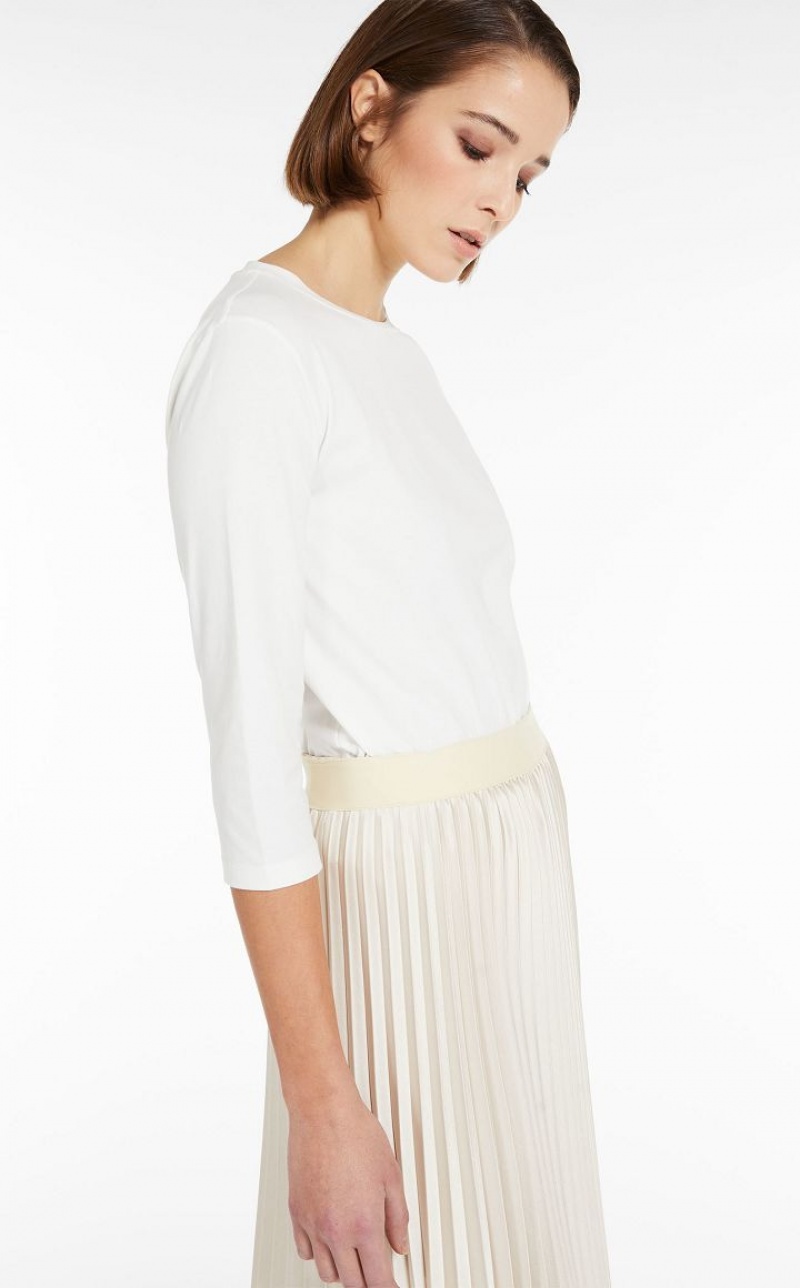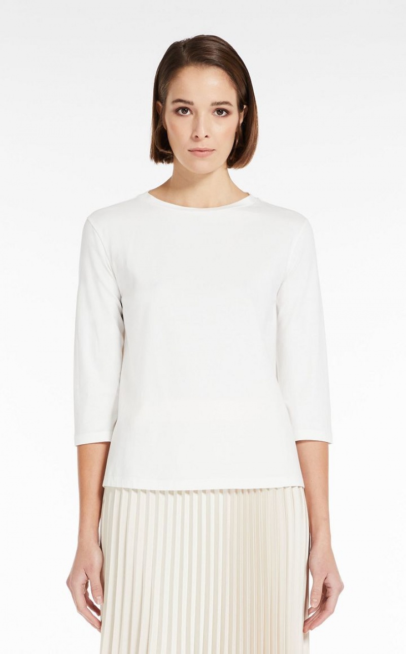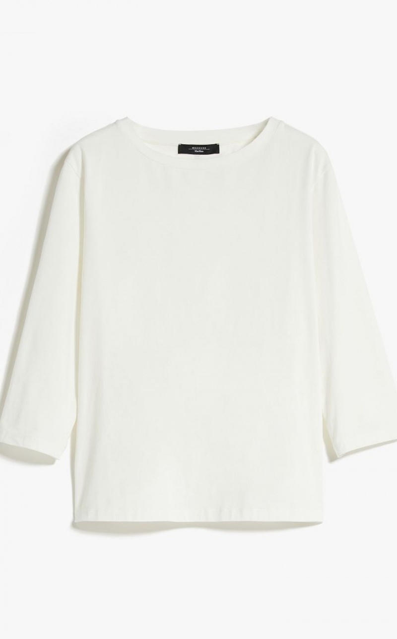 Regular-fit T-shirt in soft stretch cotton jersey, with boat neck and three-quarter sleeves. With side slits at the hem and small butterfly logo printed on the back of the neck.