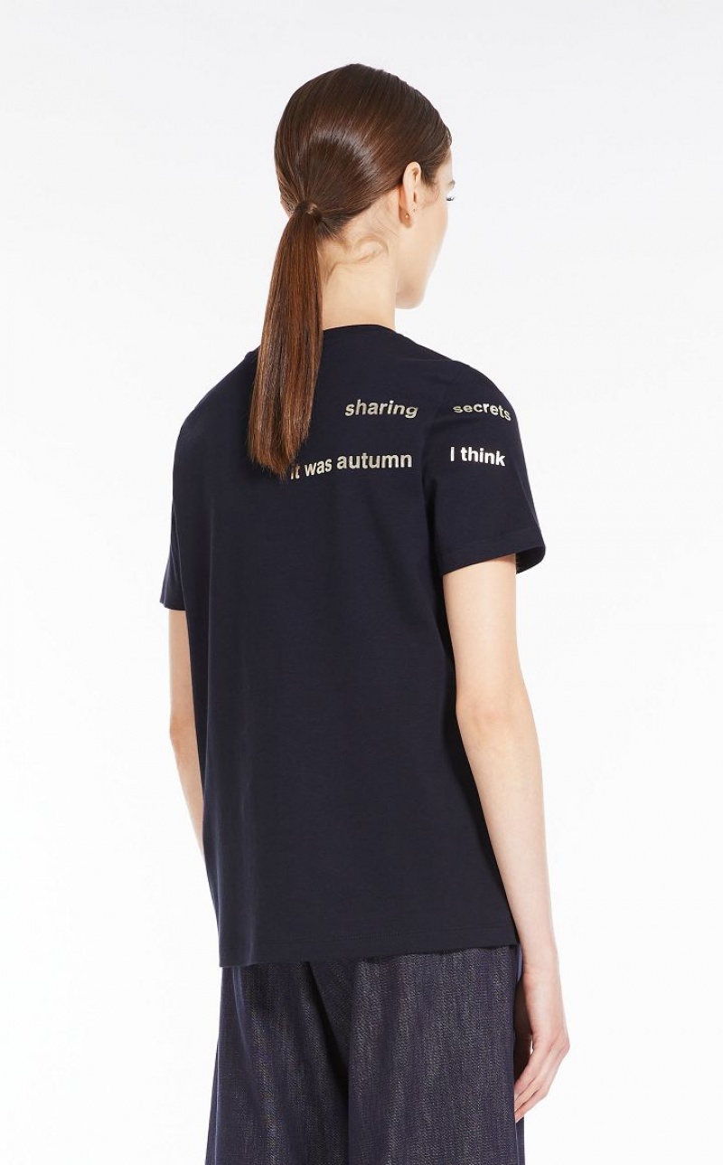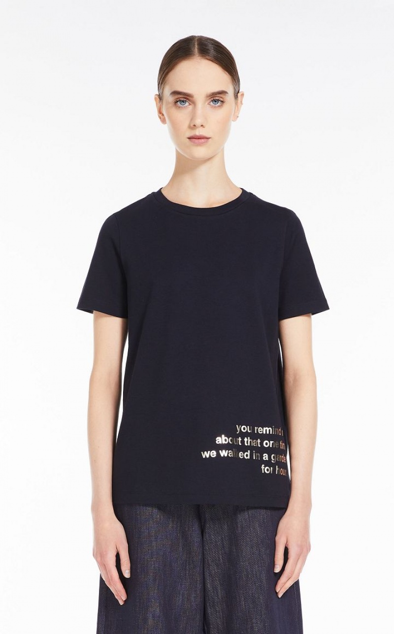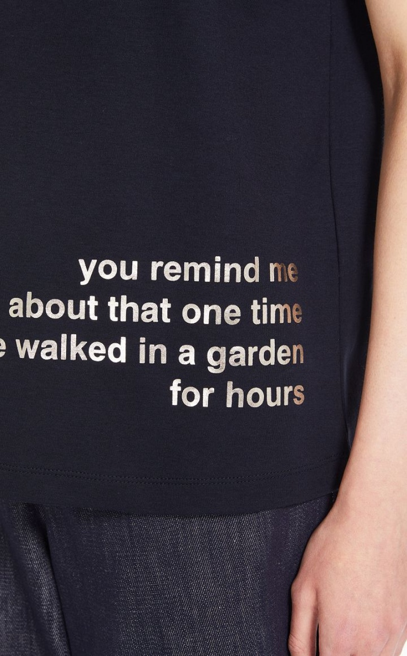 Short-sleeved crew-neck T-shirt in soft pure cotton jersey fabric. Each model is customised with a laminated print composed of poetic-inspired lettering. Length: 62 cm.