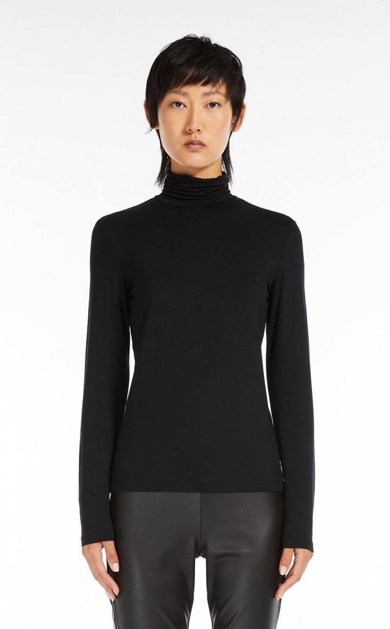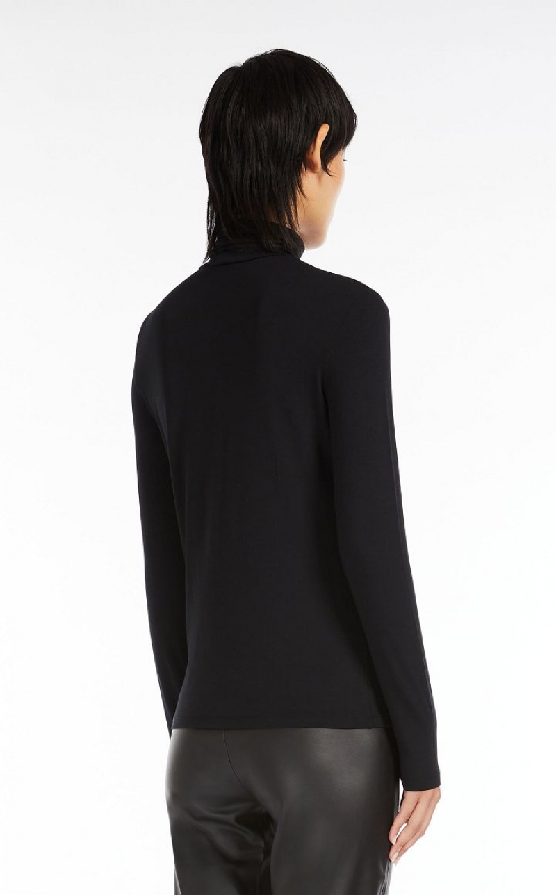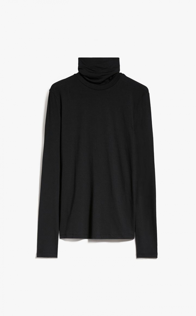 Long-sleeved T-shirt in stretch viscose jersey featuring a high neck and a slightly snug fit.