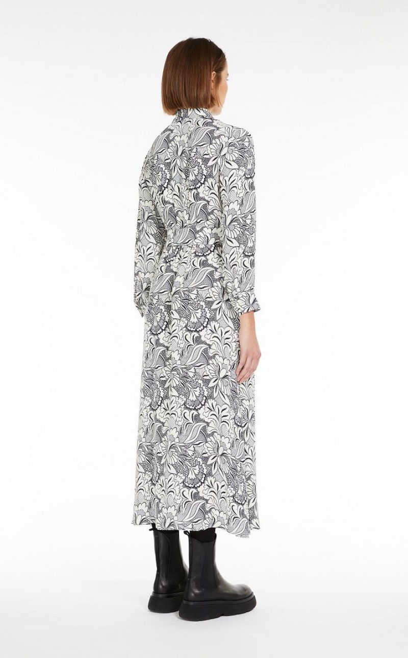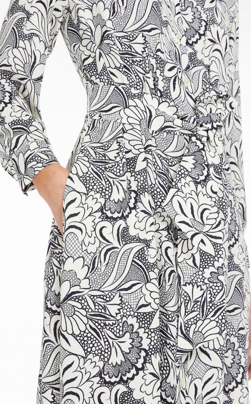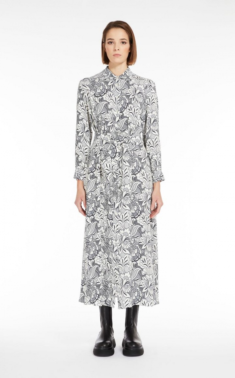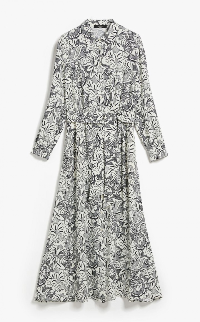 Long shirt dress made of printed viscose crêpe. Featuring a fit & flare silhouette with a full, flared skirt, shirt collar, inset side pockets and long sleeves with cuffs. Unlined garment enhanced by a fitted waist with playful gathering on the front and back. Button fastening and matching belt to accentuate the waist.