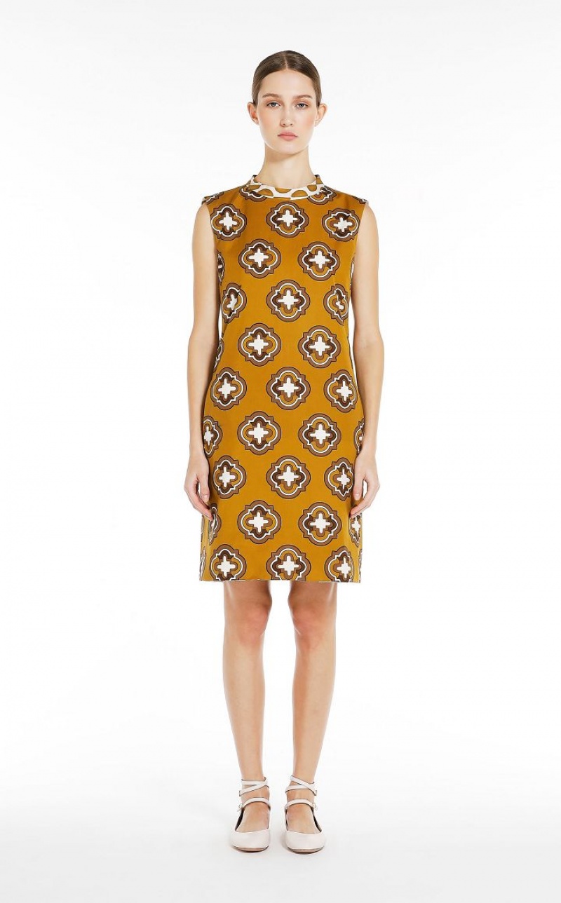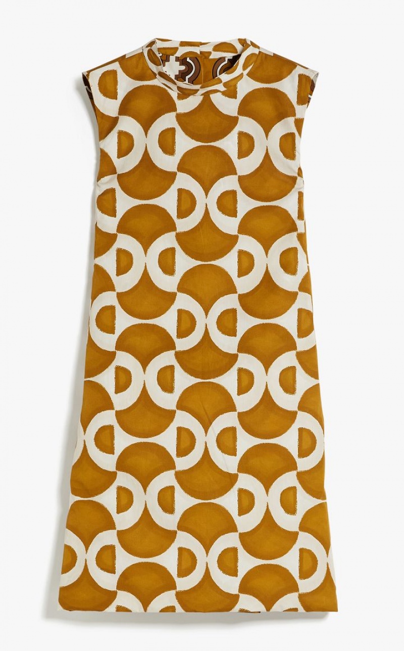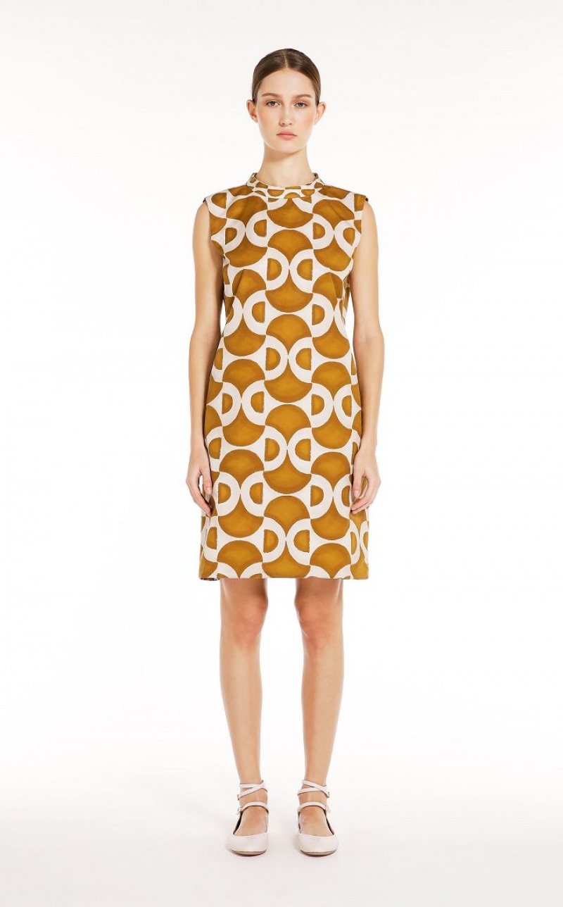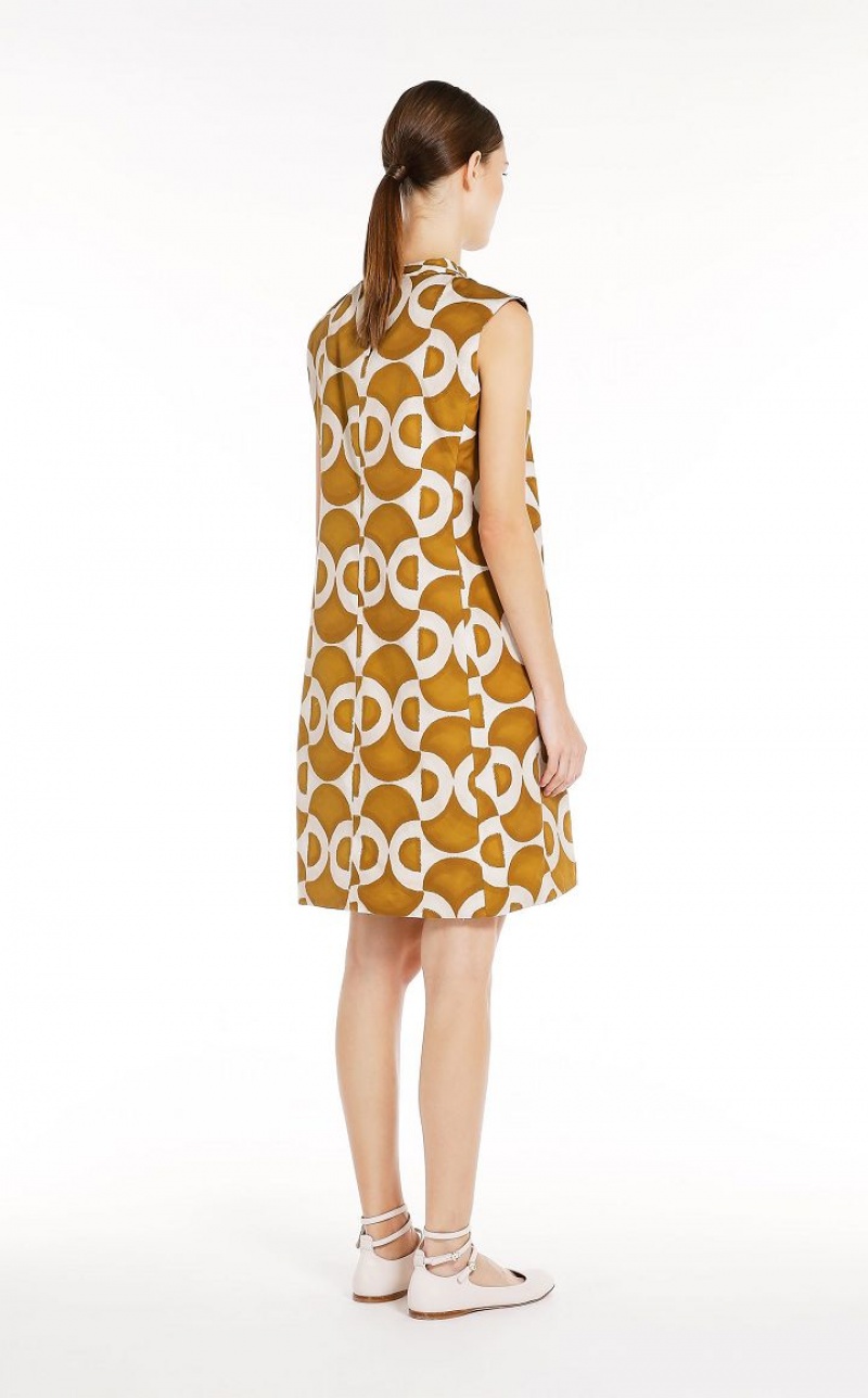 Short princess-style sleeveless dress in pure cotton poplin fabric. The reversible model boasts a different pattern on each side. Length: 94 cm.