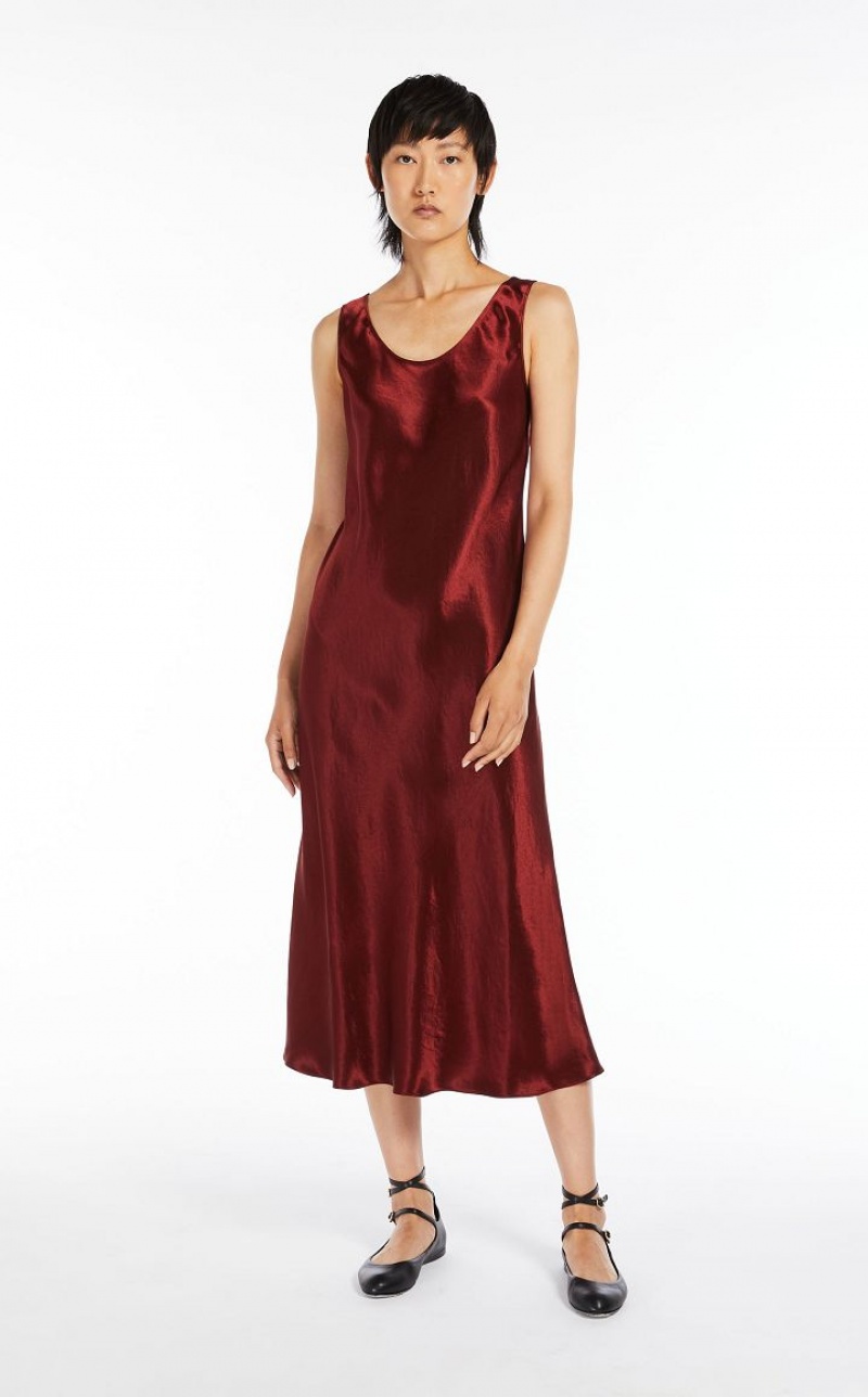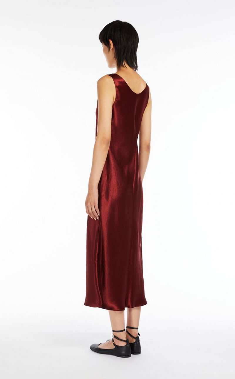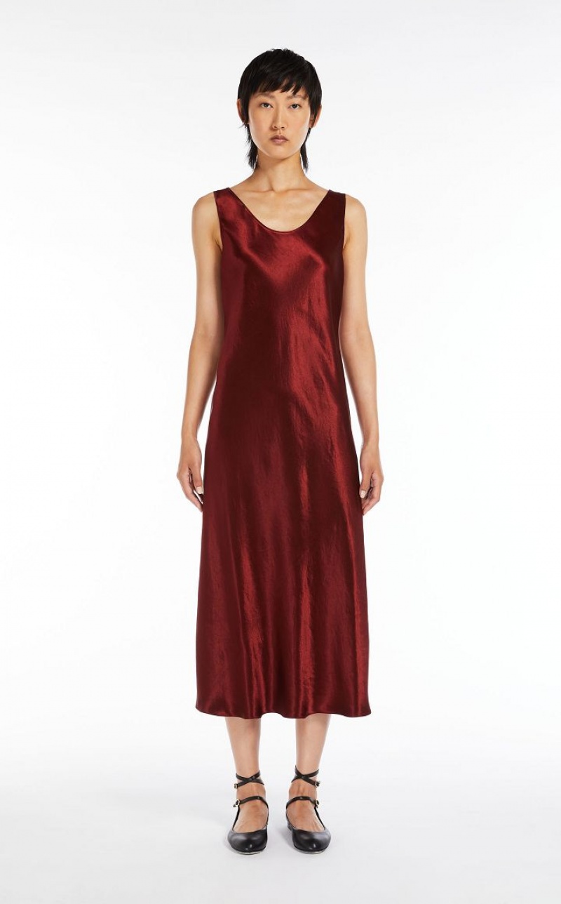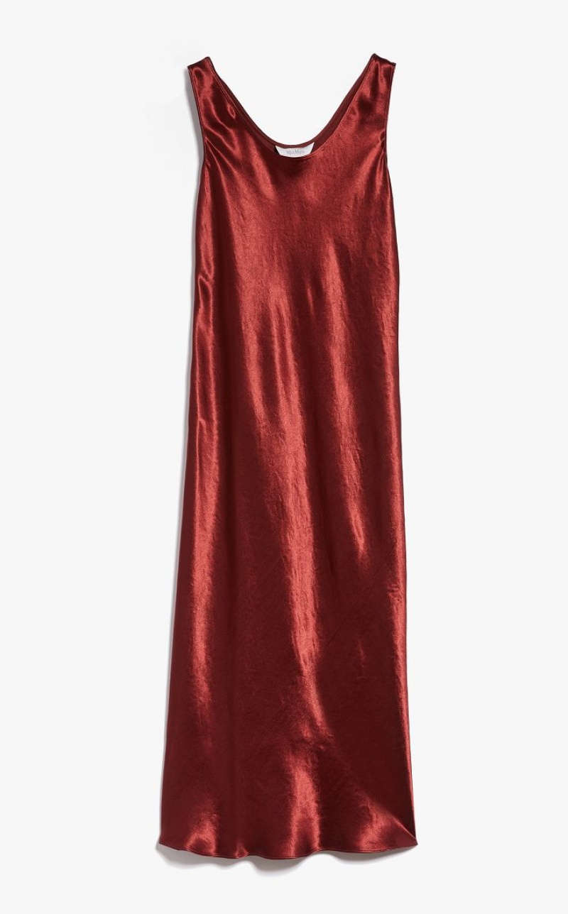 Sleeveless midi dress in acetate satin with a characteristic worn look, wide round neckline and flowing line with a diagonal cut on the front. Length: 124 cm.