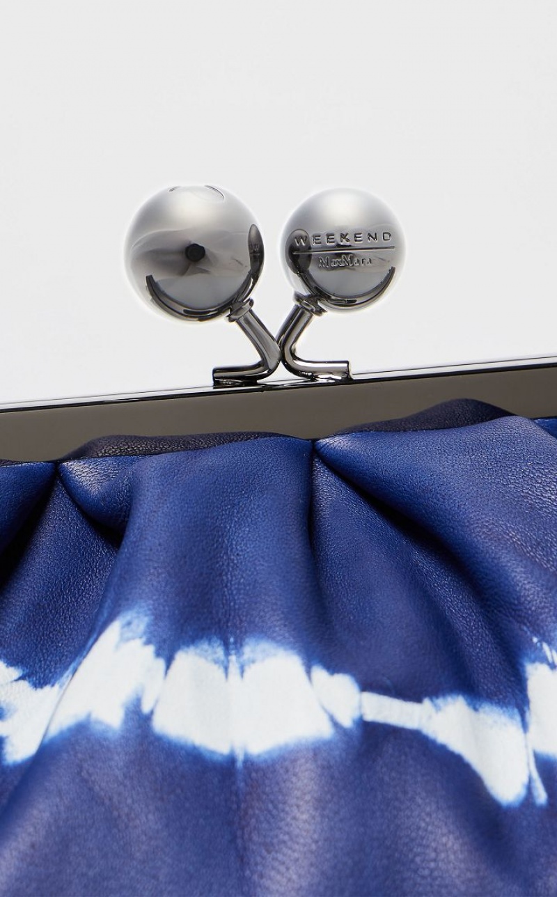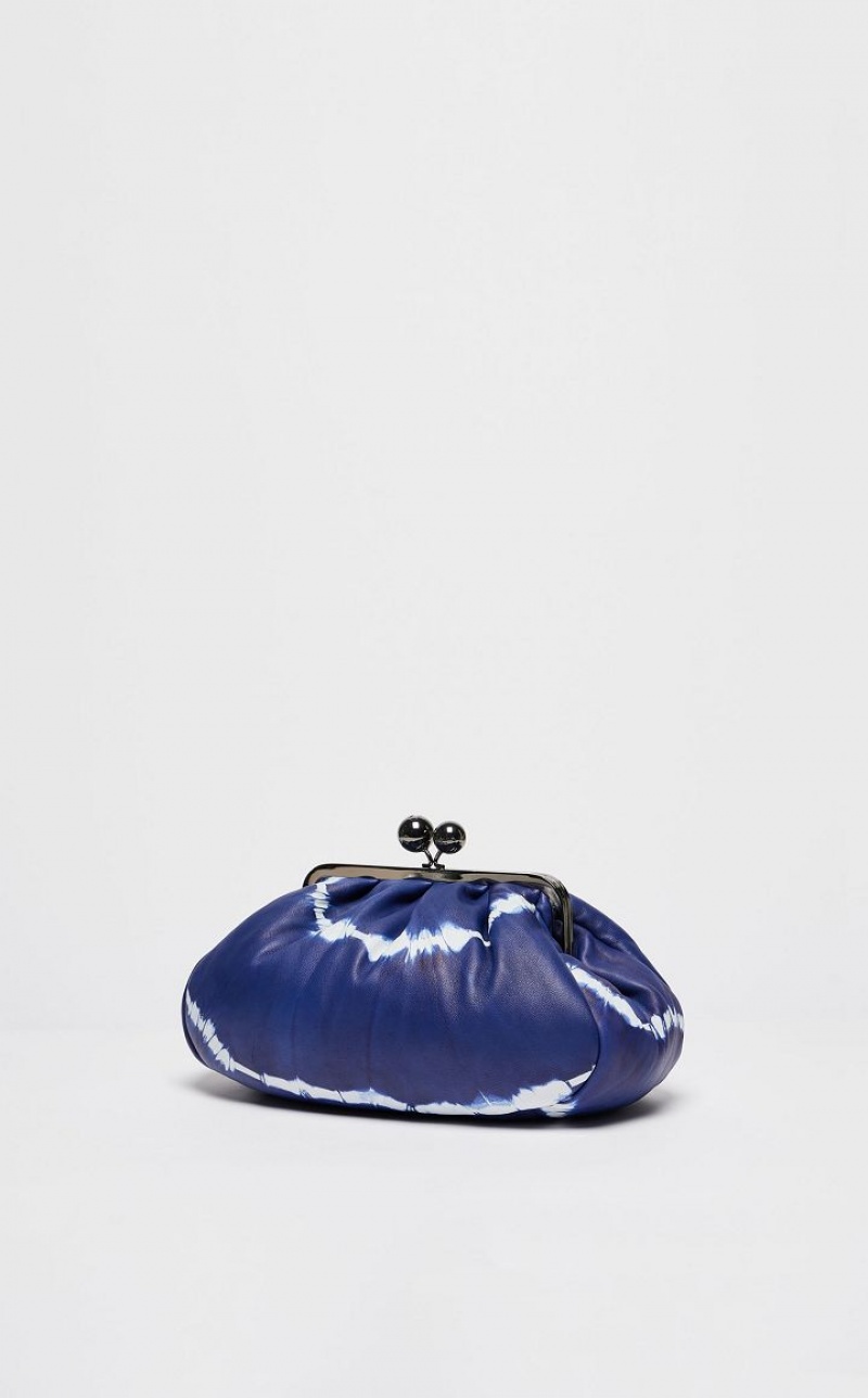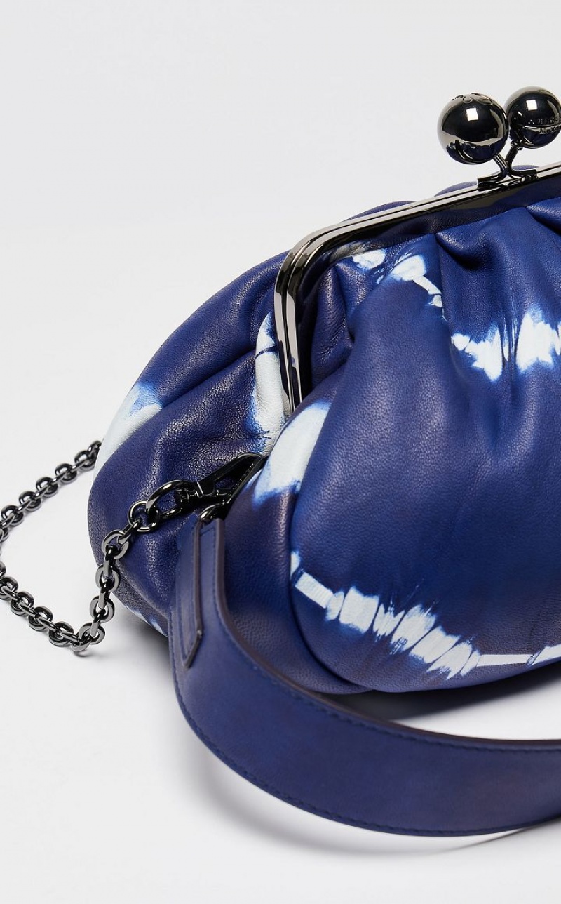 The Pasticcino Bag is the super clutch that adds a touch of personal charm to your everyday style. Pasticcino Medium in nappa leather with detachable double strap and lined interior. Featuring a handcrafted tie-dye-effect texture that makes each model unique, while the soft design adapts to the wearer’s silhouette. The detachable double chain and leather strap makes for a versatile style: the ideal crossbody or shoulder bag to accessorise an on-trend outfit. Finished with resin spheres and a custom label on the inside. Size: 31 x 13 x 21 cm.
