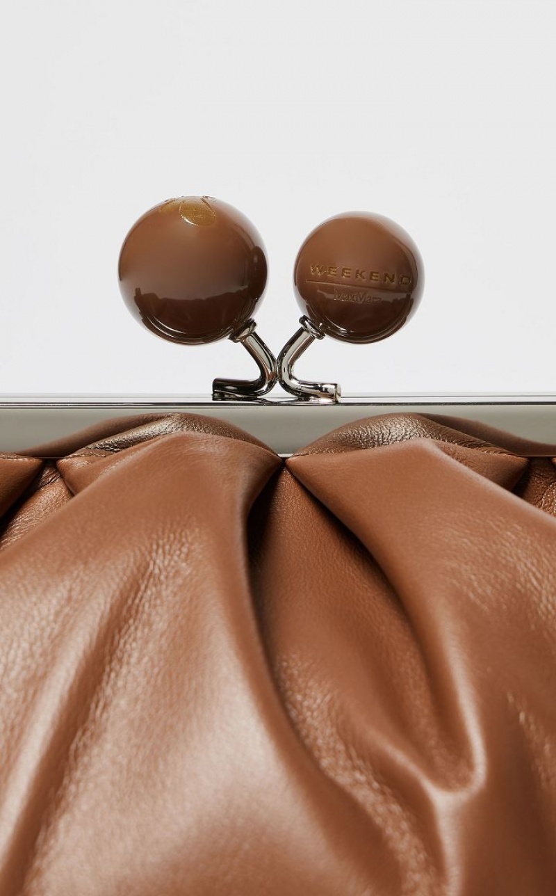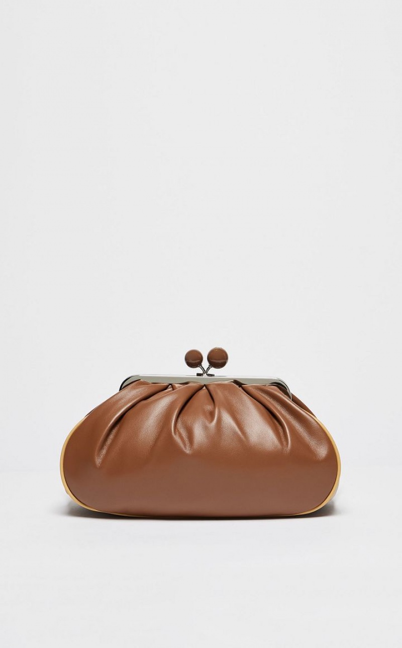 Pasticcino Bag, the super clutch that adds a touch of individuality and charm to your everyday style. Pasticcino Medium in nappa leather, finished with contrast piping that emphasises its lines. Lightly padded to enhance its soft and delicate design, which adapts to the wearer’s silhouette. The detachable double chain and leather strap makes for a versatile style: the ideal crossbody or shoulder bag to accessorise an on-trend outfit. Finished with resin spheres and a custom label on the inside. Size: 31 x 13 x 21 cm.