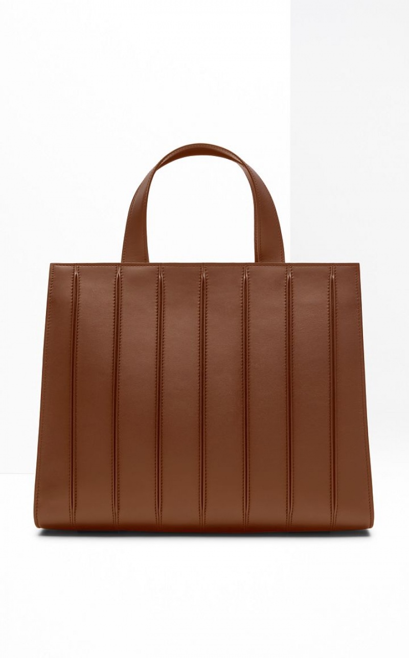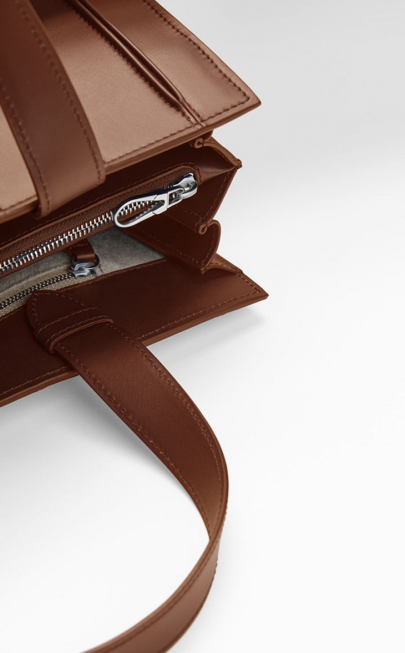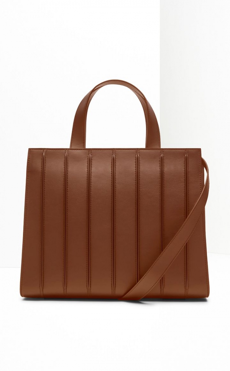 Medium Whitney Bag made of soft, smooth leather, featuring double handles and a detachable, adjustable strap. Plated metallic details. A divider separates two zipped inner compartments lined in microfibre with a soft texture.