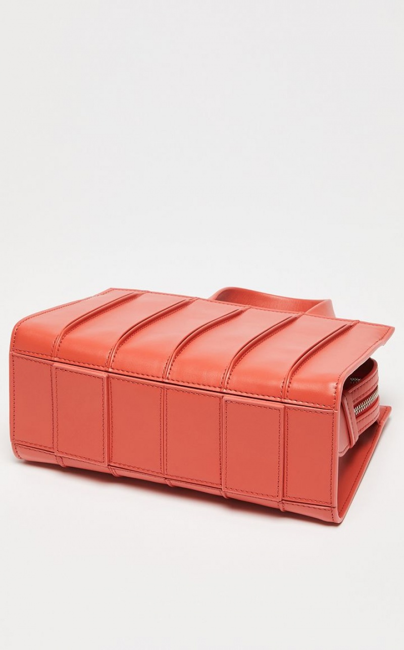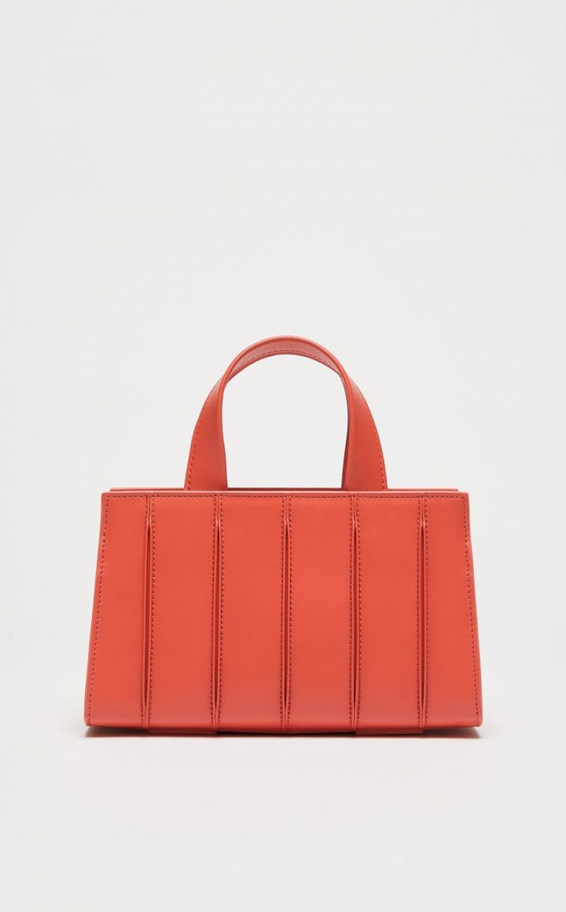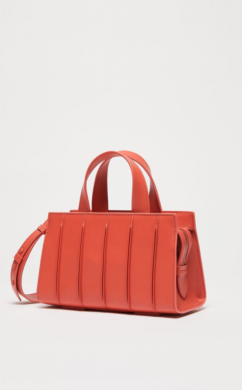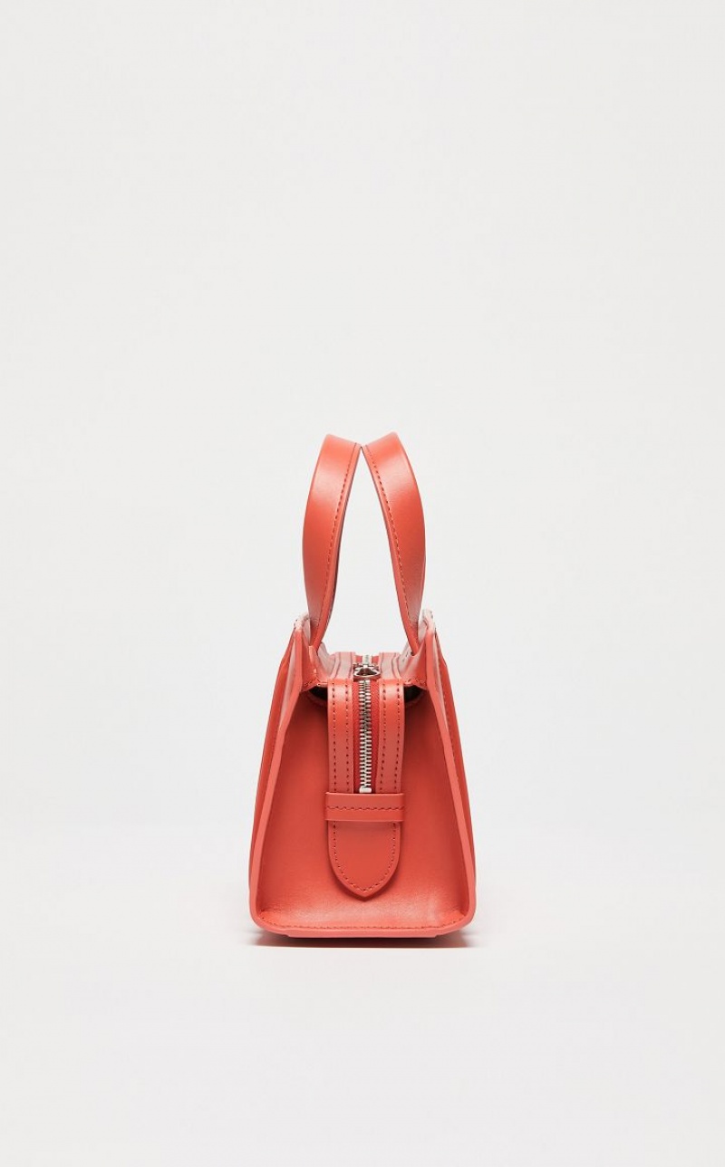 Whitney Bag made of soft, smooth leather, featuring double handles and a detachable, adjustable strap. Plated metallic details. A divider separates two zipped inner compartments lined in microfibre with a soft texture. Measurements: 26 x 12 x 15 cm.