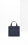 Small Whitney Bag made of soft, smooth leather, featuring double handles and a detachable, adjustable strap. Plated metallic details. A divider separates two zipped inner compartments lined in microfibre with a soft texture. Measurements: 24 x 11 x 24 cm.